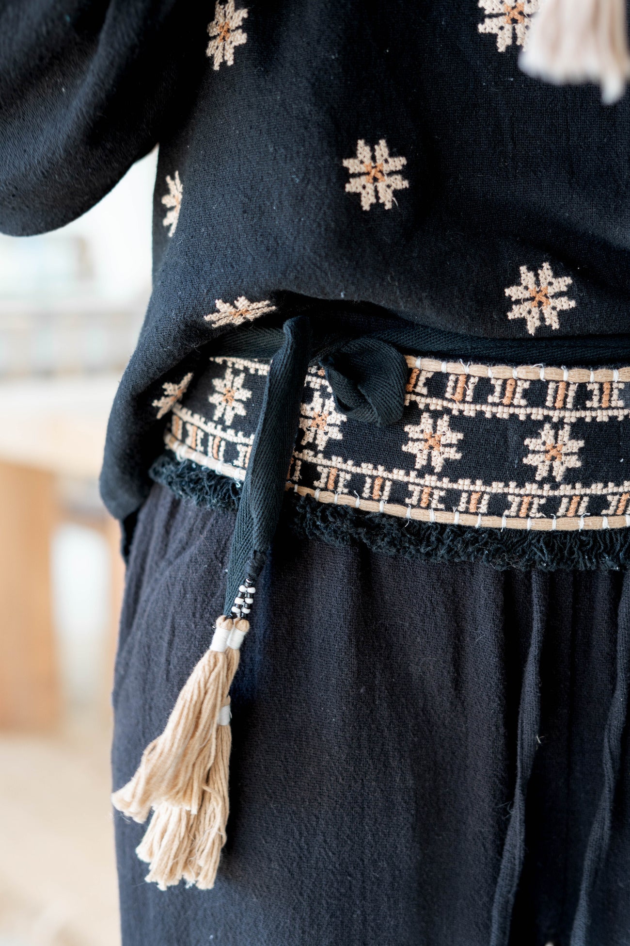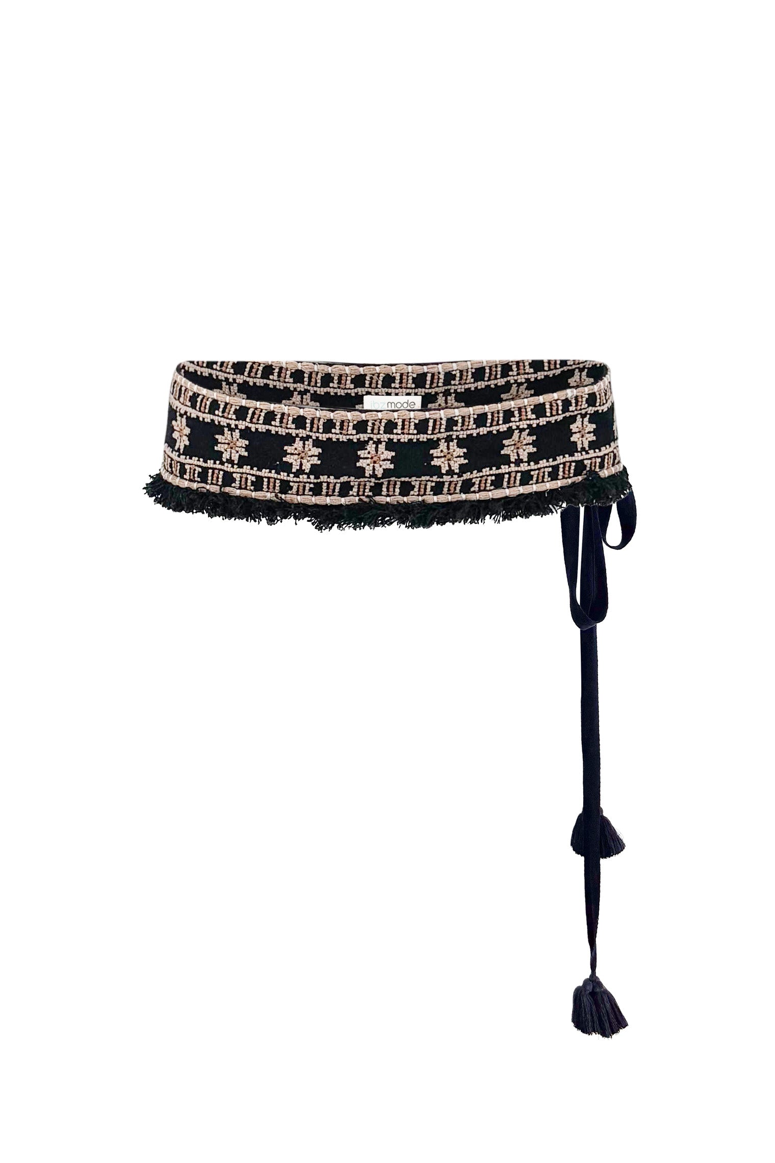 Product gegevens: Geborduurde riem / ceintuur die in te taille gewikkeld en gestrikt kan worden