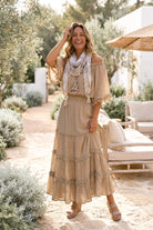 Binnen het mix & match concept vormt deze dames sjaal een subtiele aanvulling op zowel print als effen items. Ze versterkt de boho chic uitstraling van de collectie en maakt elke look compleet.