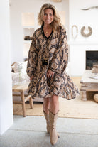 De Tunic Violeta Paisley Black is een prachtige toevoeging aan je garderobe. Deze elegante tuniek is voorzien van een stijlvol paisley-patroon, met zwarte accenten voor een chique uitstraling. De tunic is gemaakt van hoogwaardige materialen en heeft een comfortabele pasvorm. Draag hem met een paar zwarte panty's en enkellaarsjes voor een moeiteloos chique look tijdens koudere dagen. Met deze tuniek ben je helemaal klaar voor het nieuwe seizoen!