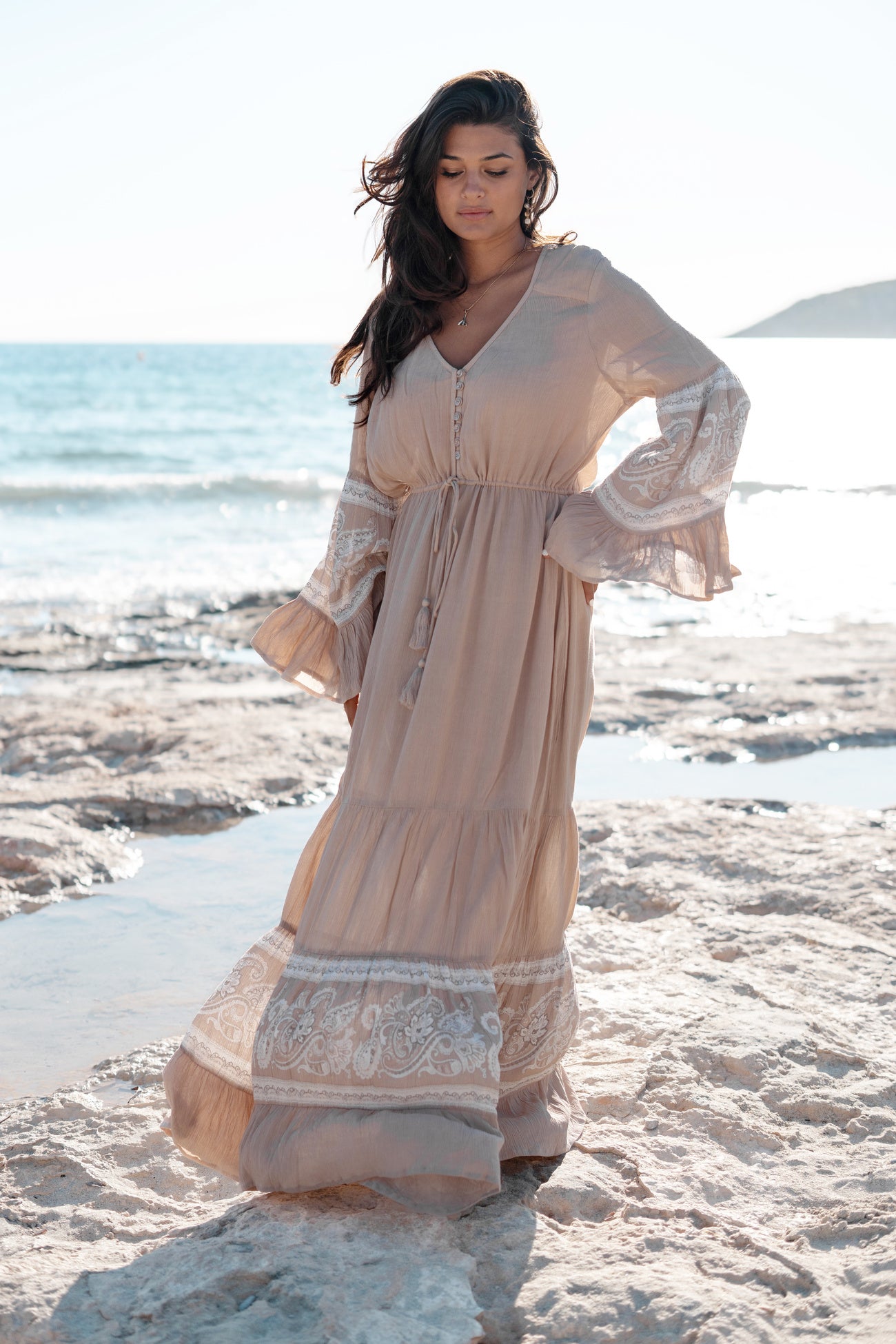 Met de dress gloria summer light taupe geef je je garderobe een frisse boho-update. Shop jouw favoriet vandaag nog online bij brands of ibiza!