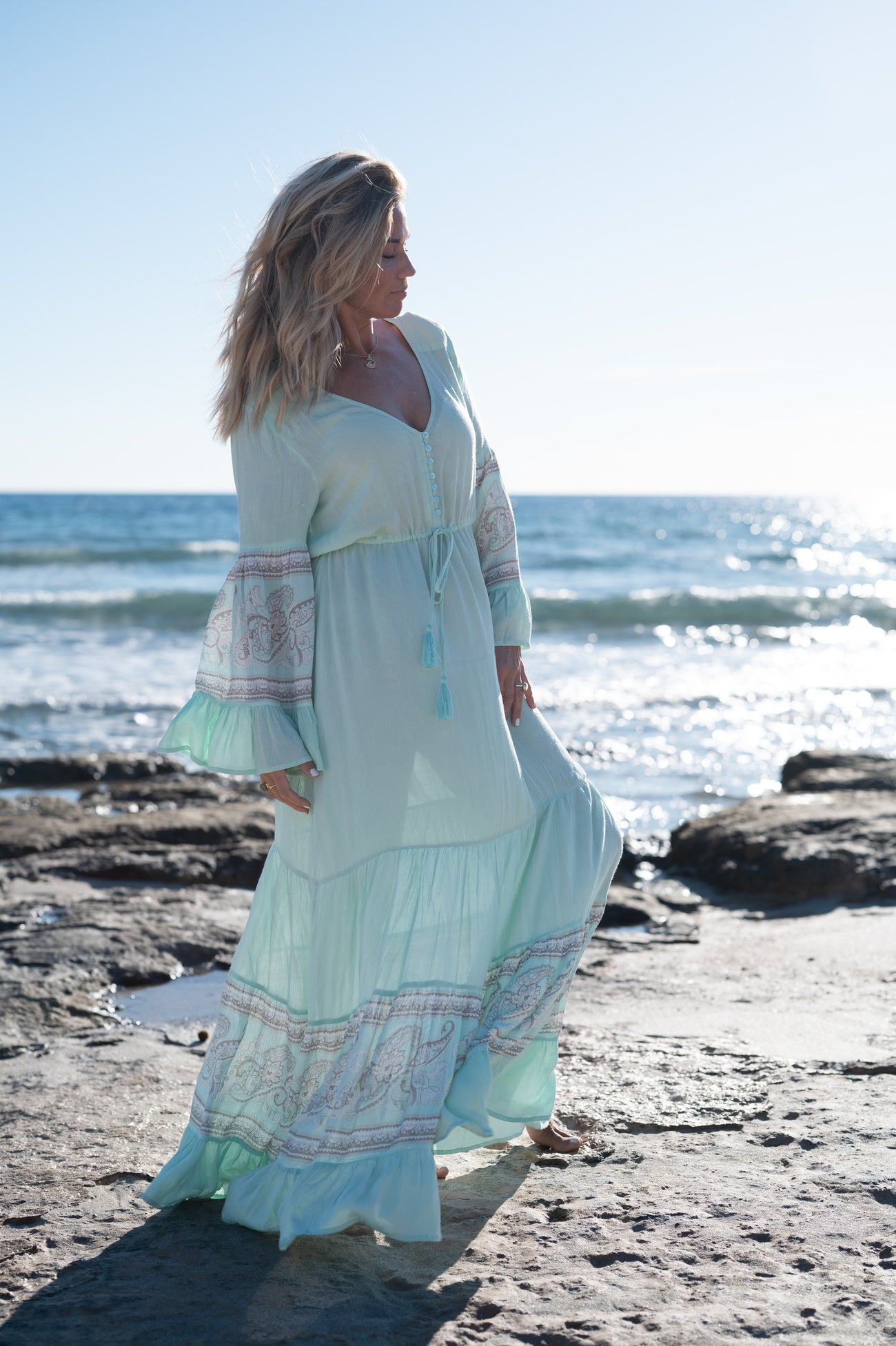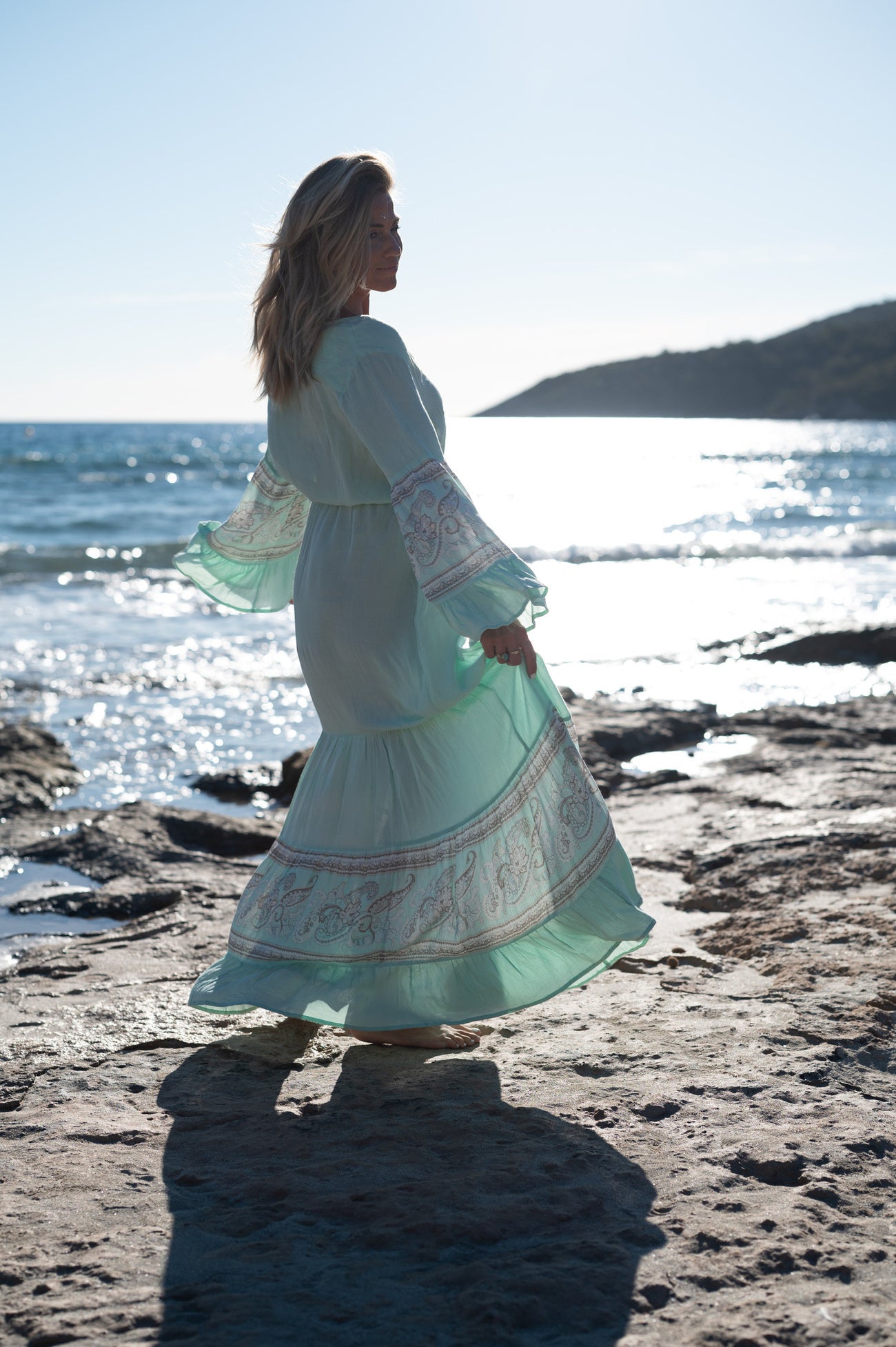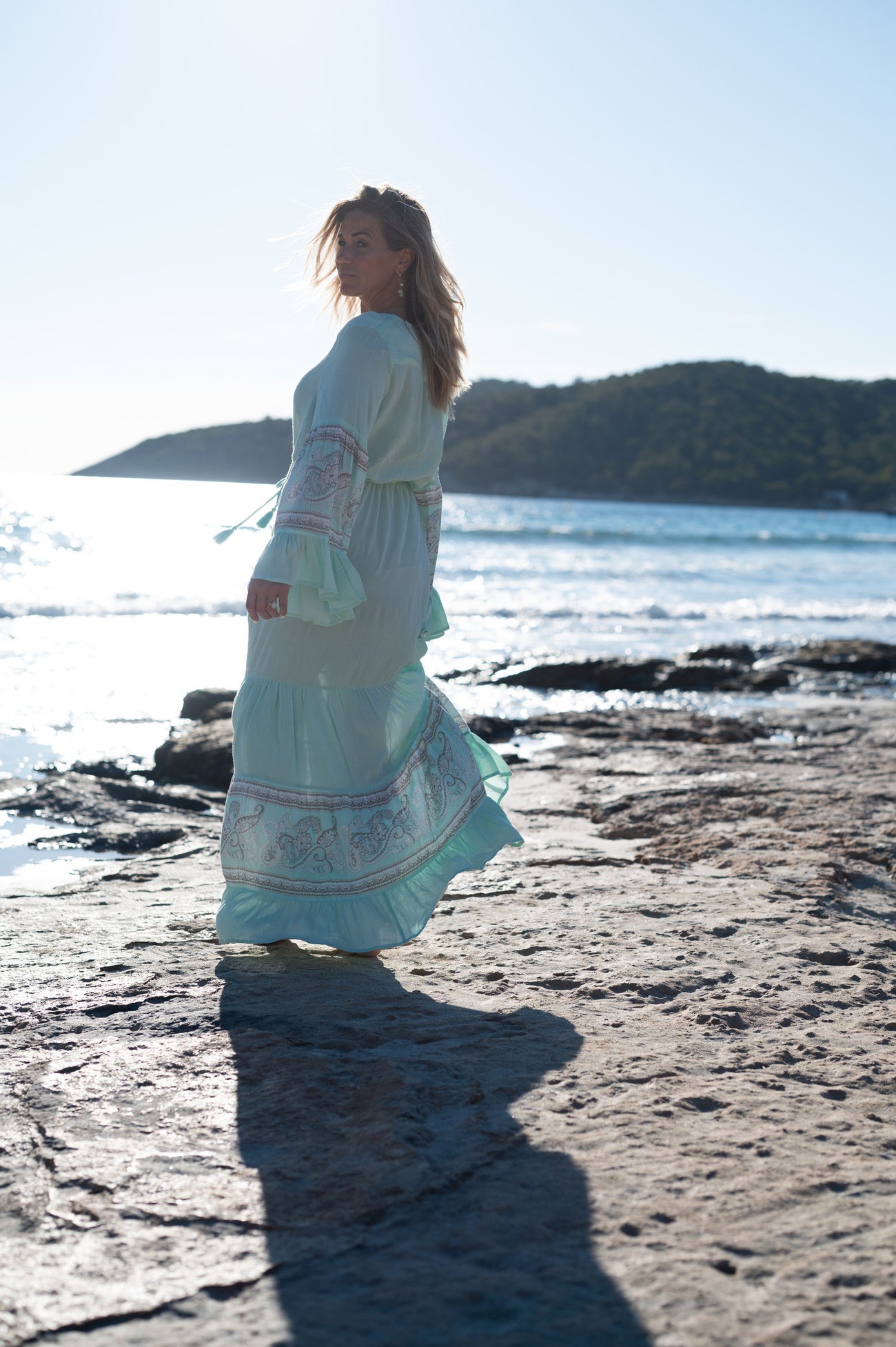 Met de dress gloria summer mint geef je je garderobe een frisse boho-update. Shop jouw favoriet vandaag nog online bij brands of ibiza!