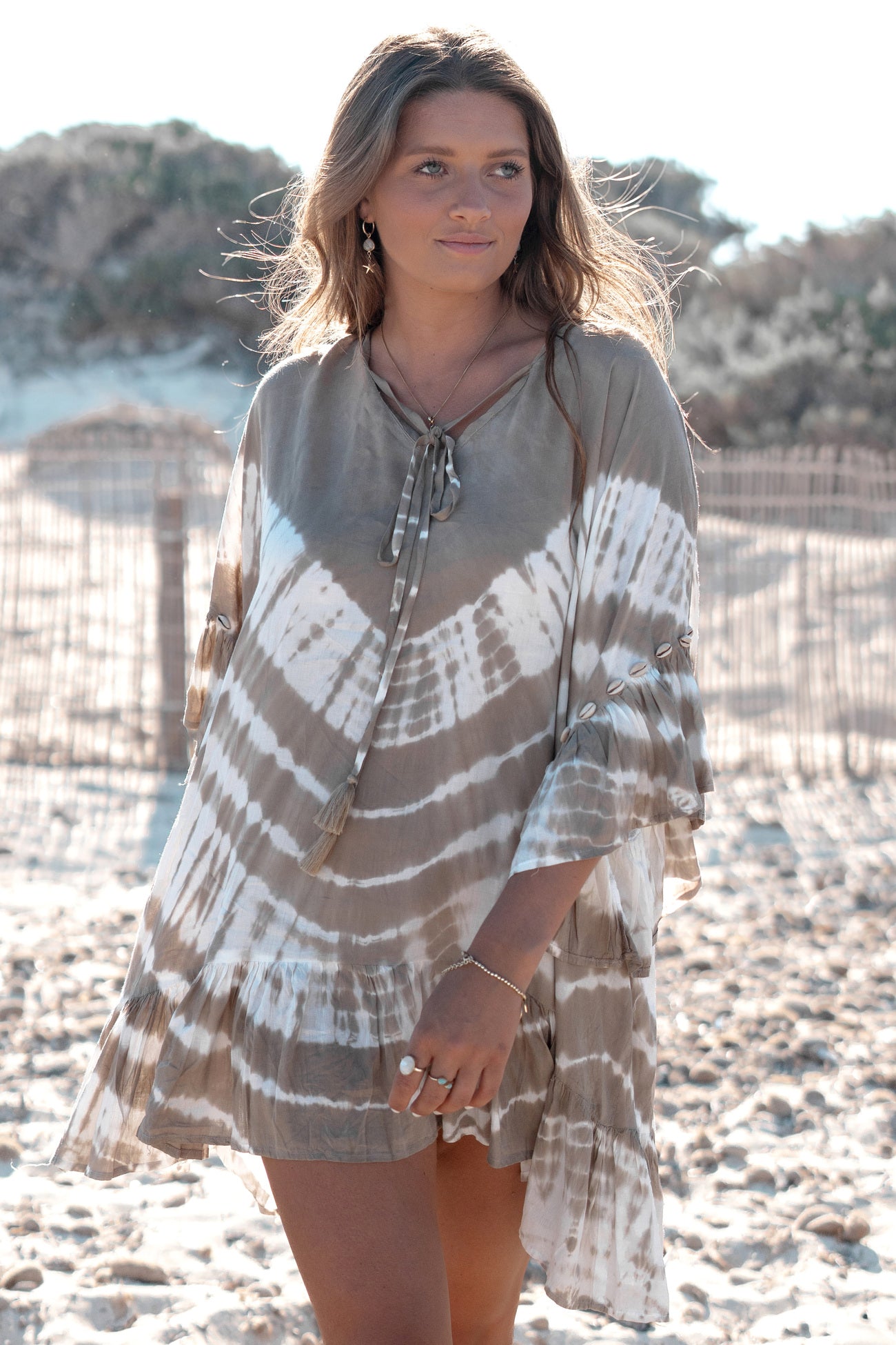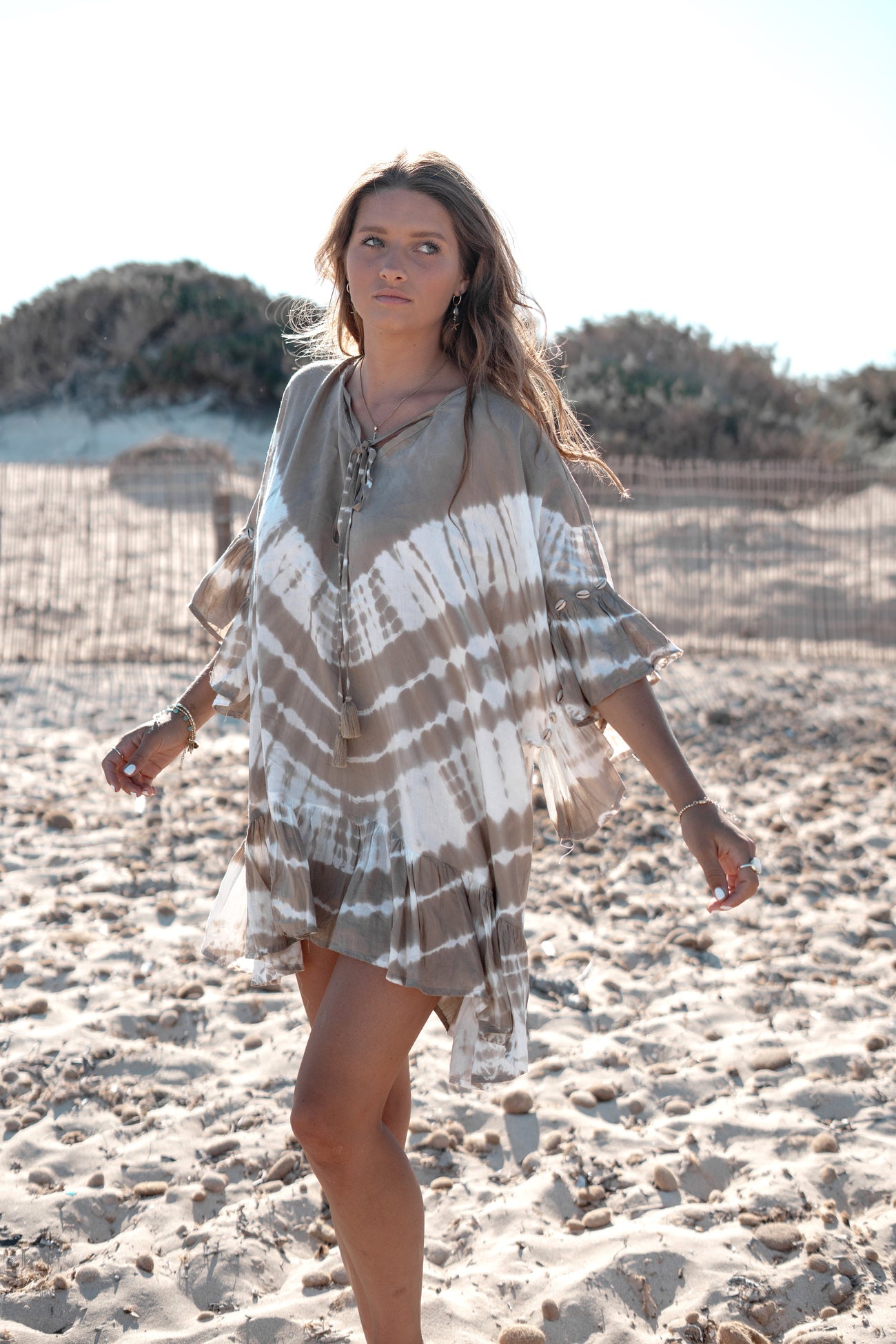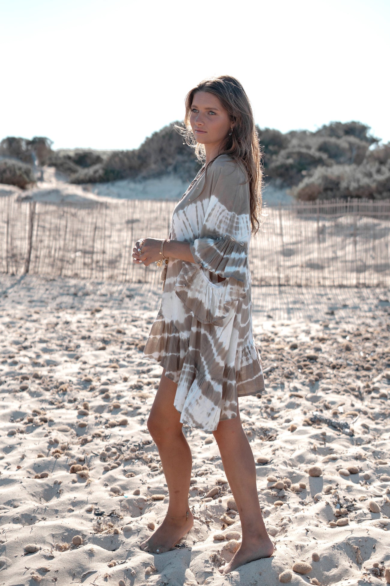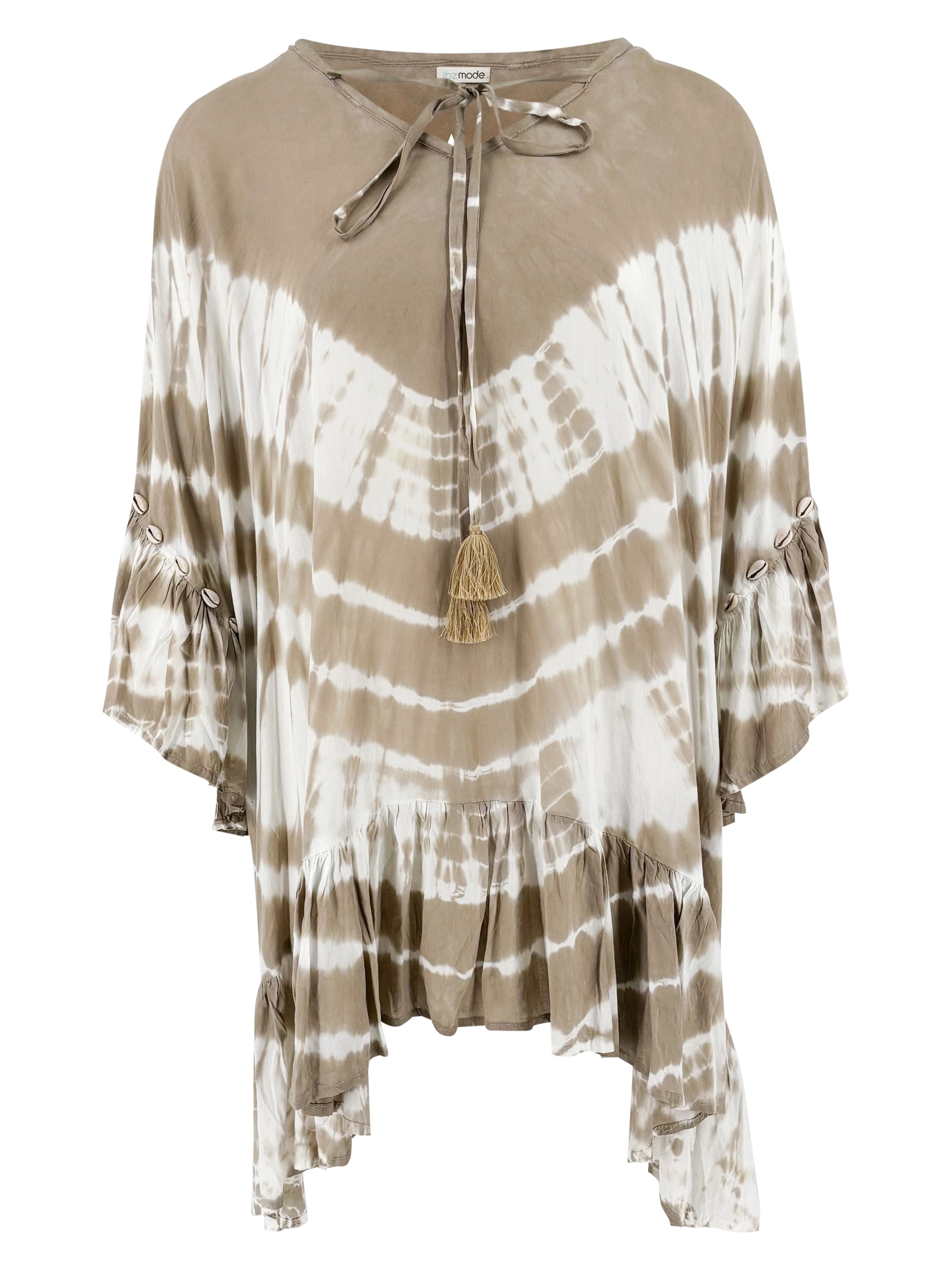 Op zoek naar een item met bohemian flair? Dan is de Tunic Liv Waze Taupe/ white van ibzmode jouw match. Draag het met je favoriete accessoires voor een echte brands of Ibiza-look. Bestel snel en geniet van de bohemian lifestyle, elke dag opnieuw.