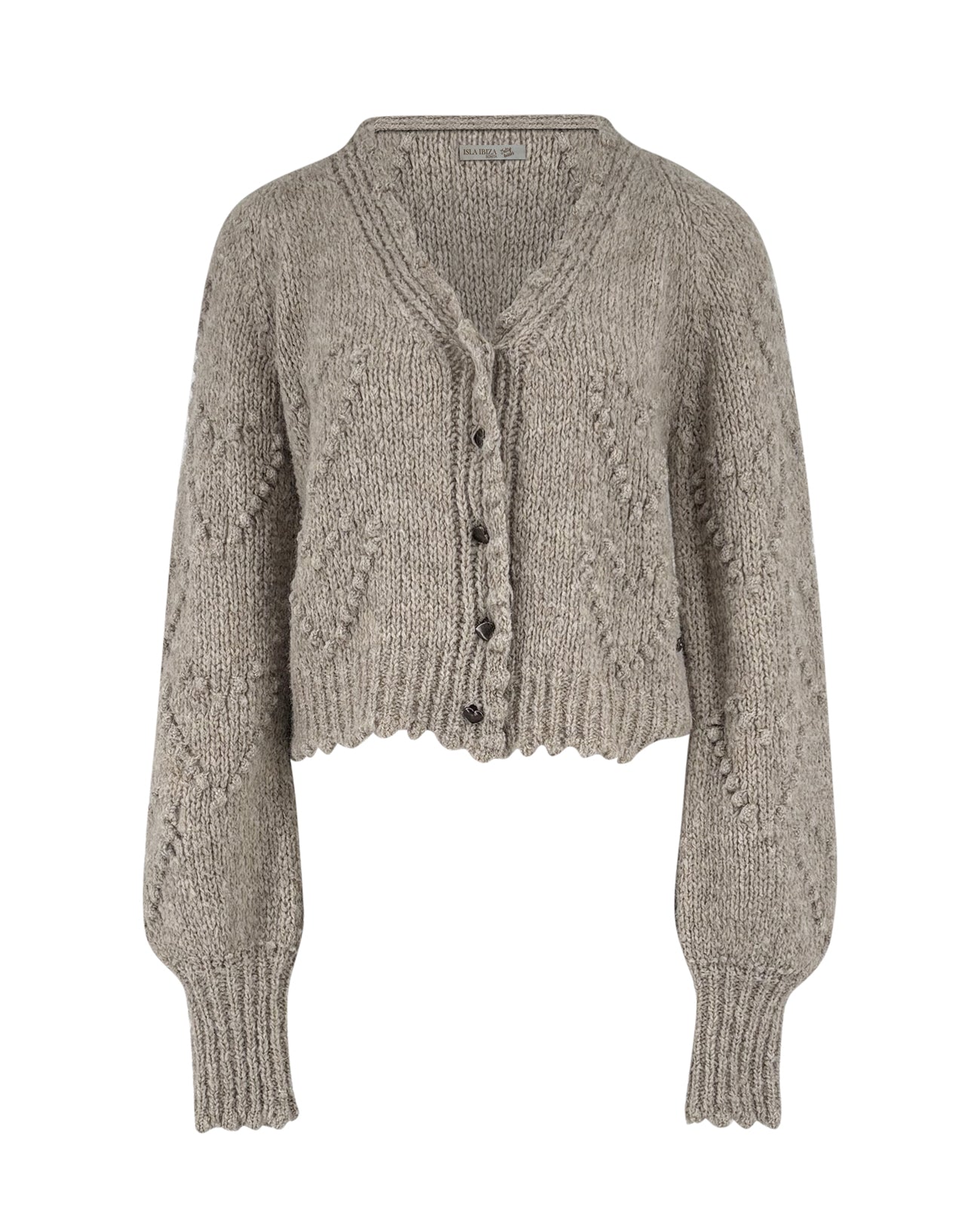 Product gegevens: Gebreid vest met harten dessin, heeft Isla Ibiza knoopjes en V-hals