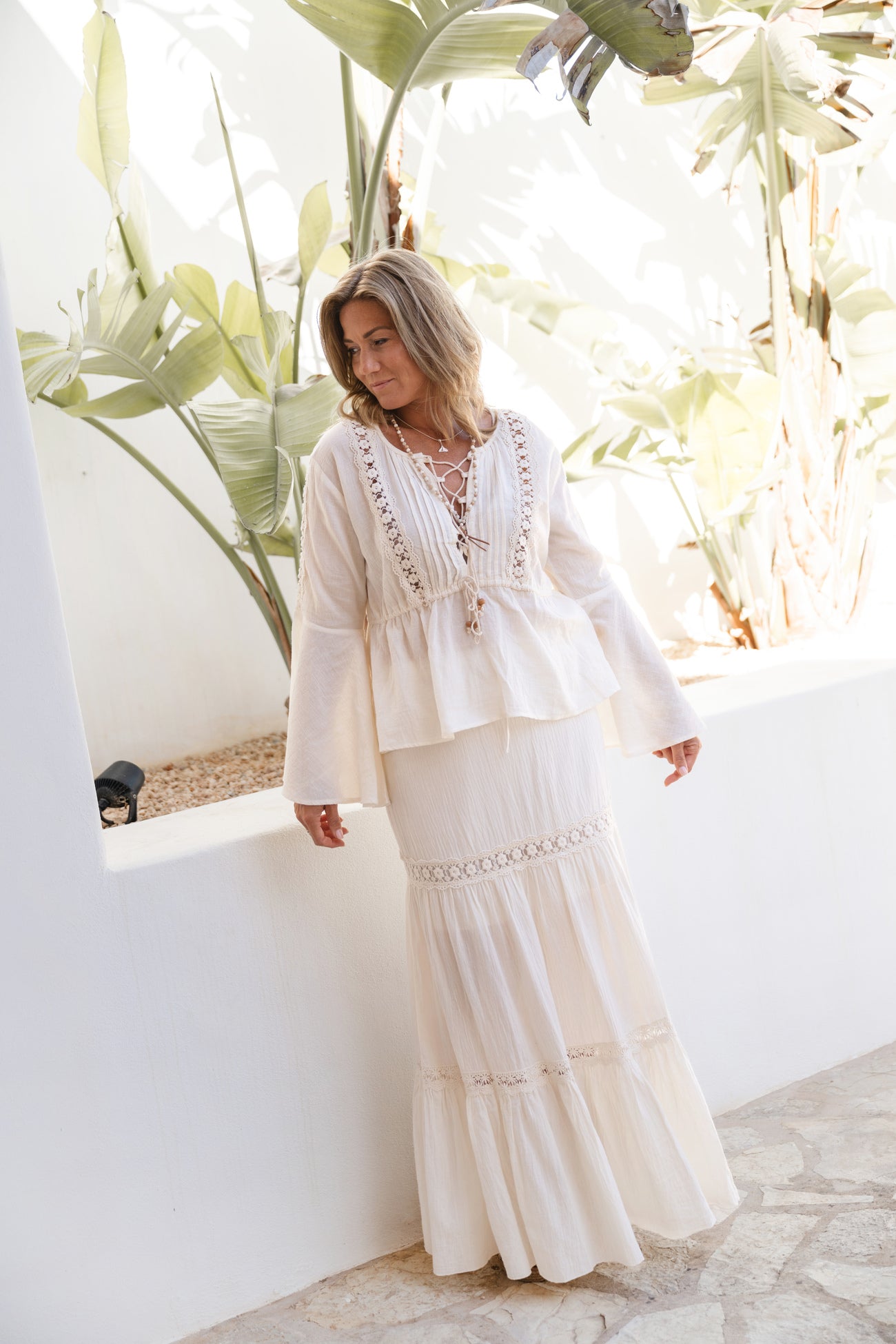 Met onze Ibiza blouses geef je jouw look een vrouwelijke, relaxte en bohemian uitstraling. Deze luchtige tops zijn perfect voor zonnige dagen, citytrips of festivals. Je vindt in onze collectie blouses met borduursels, kant, printjes of fijne details zoals ruches en knoopsluitingen. Van soepelvallende tunieken tot romantische boho blouses – elk item straalt vrijheid en stijl uit. Combineer jouw favoriete blouse met een maxi rok, flared jeans of short voor een complete Ibiza outfit. Laat je inspireren en ontdek de mooiste blouses met een zomerse twist.