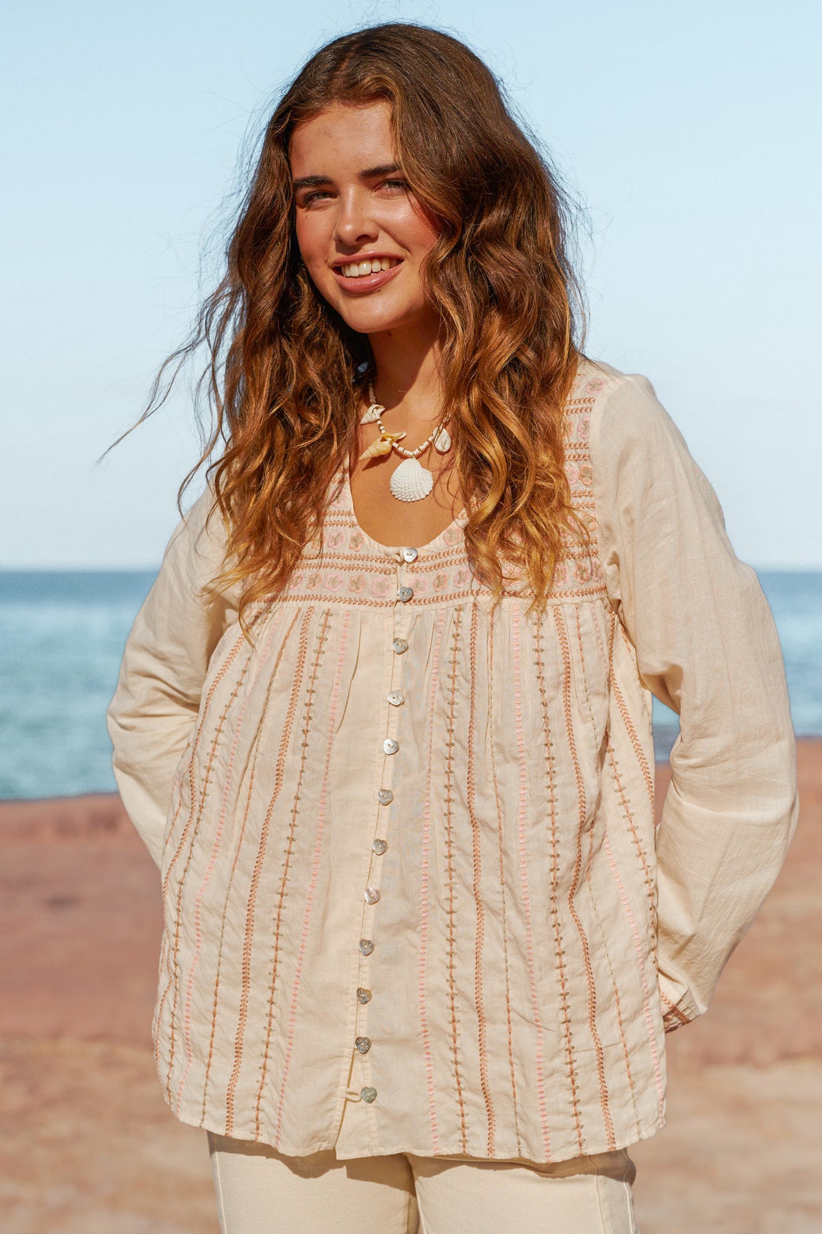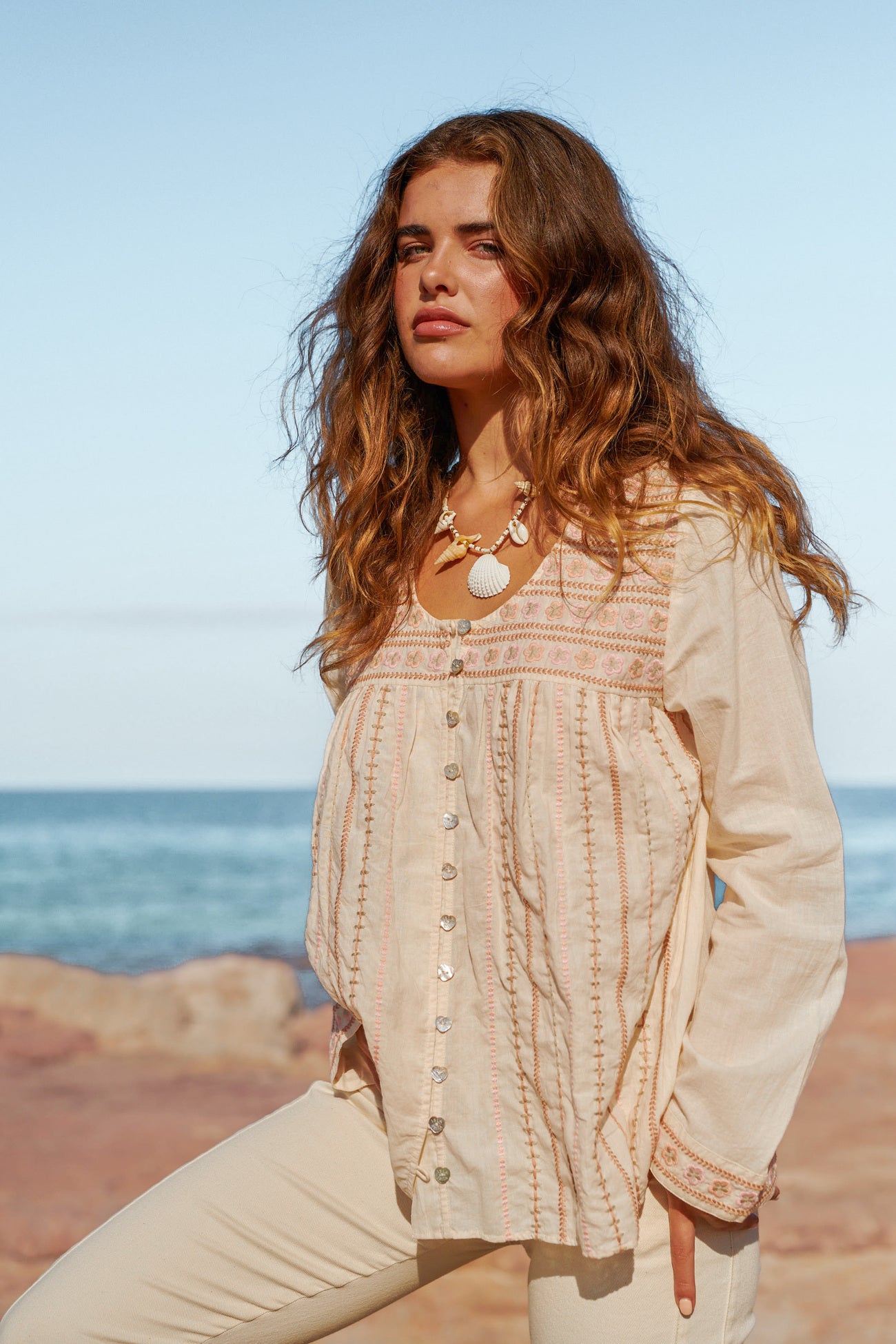 Met onze Ibiza blouses geef je jouw look een vrouwelijke, relaxte en bohemian uitstraling. Deze luchtige tops zijn perfect voor zonnige dagen, citytrips of festivals. Je vindt in onze collectie blouses met borduursels, kant, printjes of fijne details zoals ruches en knoopsluitingen. Van soepelvallende tunieken tot romantische boho blouses – elk item straalt vrijheid en stijl uit. Combineer jouw favoriete blouse met een maxi rok, flared jeans of short voor een complete Ibiza outfit. Laat je inspireren en ontdek de mooiste blouses met een zomerse twist.