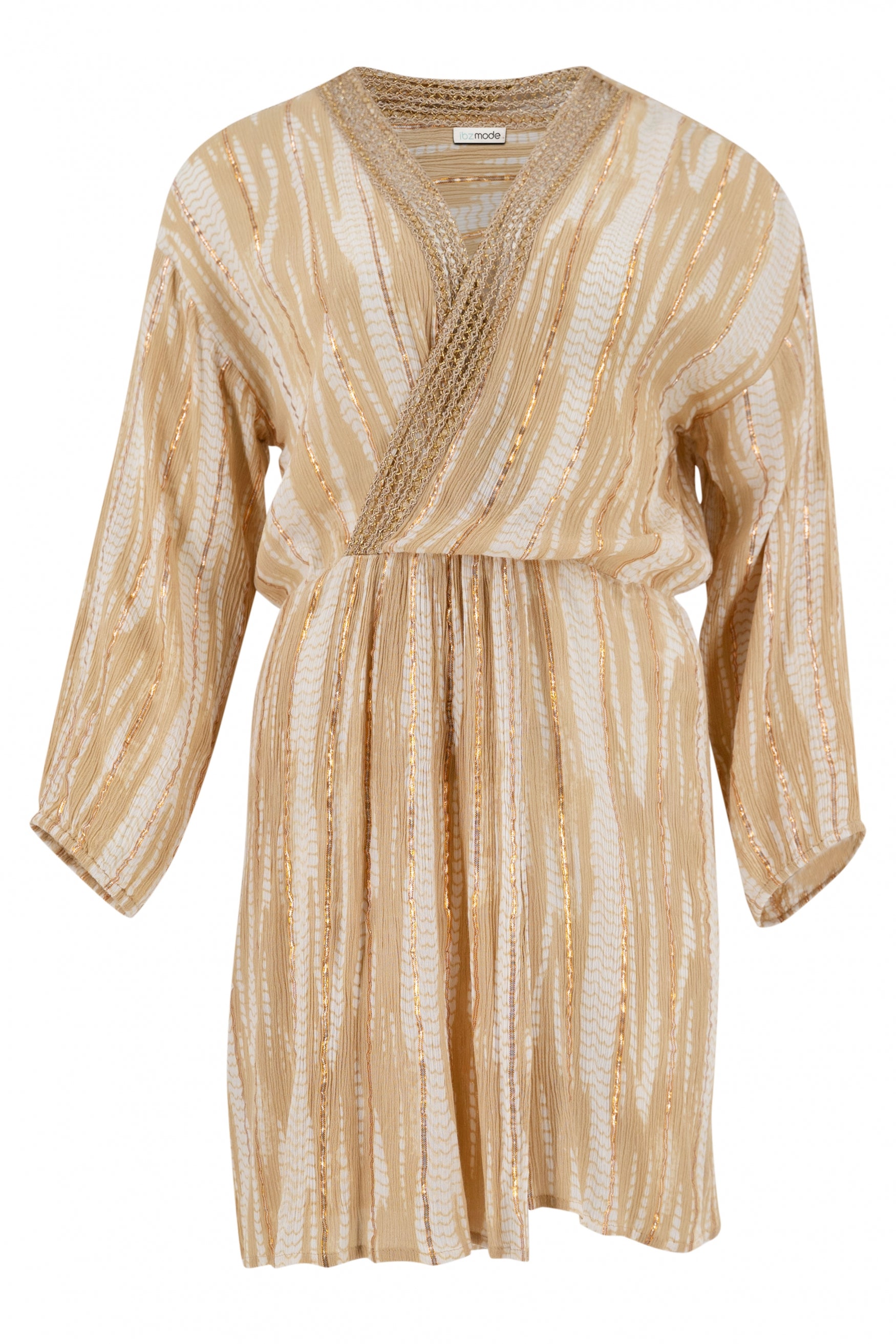 Product gegevens: Playsuit met overslag en gouden Lurex details, op de rug in de nek is een knoopsluiting