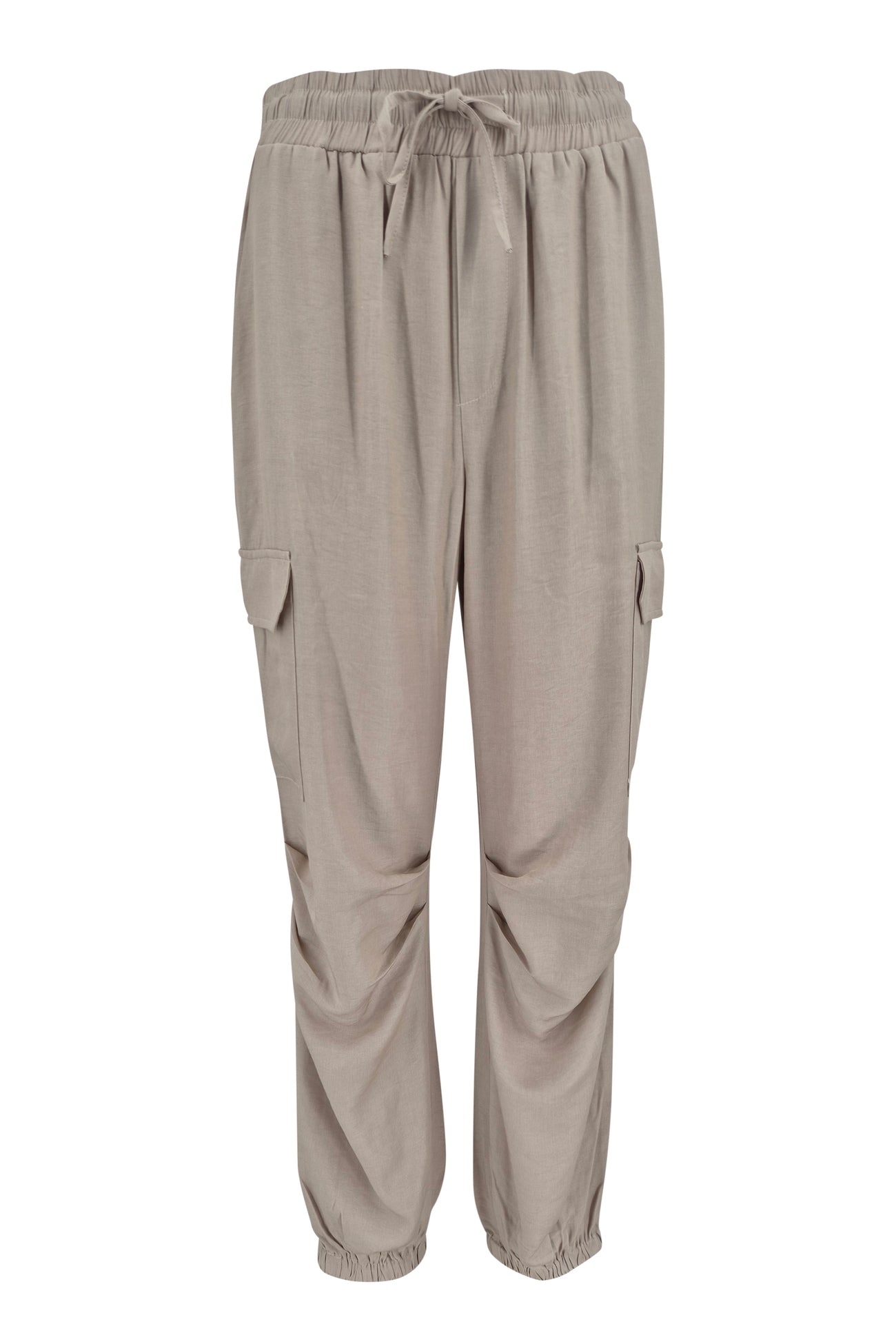 De Alyssa Cargo Pants sand hebben een elastische taille met trekkoord. Dit zorgt voor een comfortabele pasvorm. De cargo zakken op de benen geven een krachtige en functionele touch. De broek loopt taps toe en heeft elastiek bij de enkels. Hierdoor ontstaat een sportieve en vrouwelijke balans.