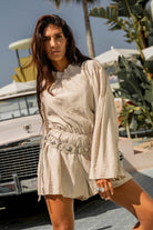 Het ontwerp benadrukt vrouwelijkheid zonder in te leveren op comfort. De Ellis Playsuit sand past perfect binnen de krachtige uitstraling van Motel Escape. Shop dit item bij brands of Ibiza en ontdek de sensuele sfeer van Palm Paradise.