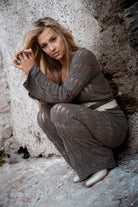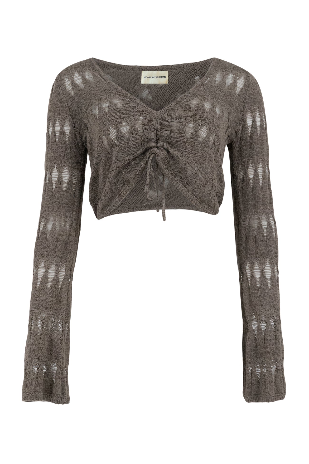 Deze Beau Ajour Top van MOOST Wanted in het dark taupe ademt Ibiza vibes. Fijn gebreid, wijd uitlopende mouwen, V-hals en opengewerkt dessin, combineer de met Beau Ajour Pant Voeg deze must-have toe aan je zomergarderobe.