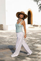 De Pants Vejer White van Isla Ibiza is een witte bohemian broek dames met een rustige en verfijnde uitstraling. De lichte kleur past perfect binnen de Bonita Blue collectie en vormt een sterke basis voor prints en denim.