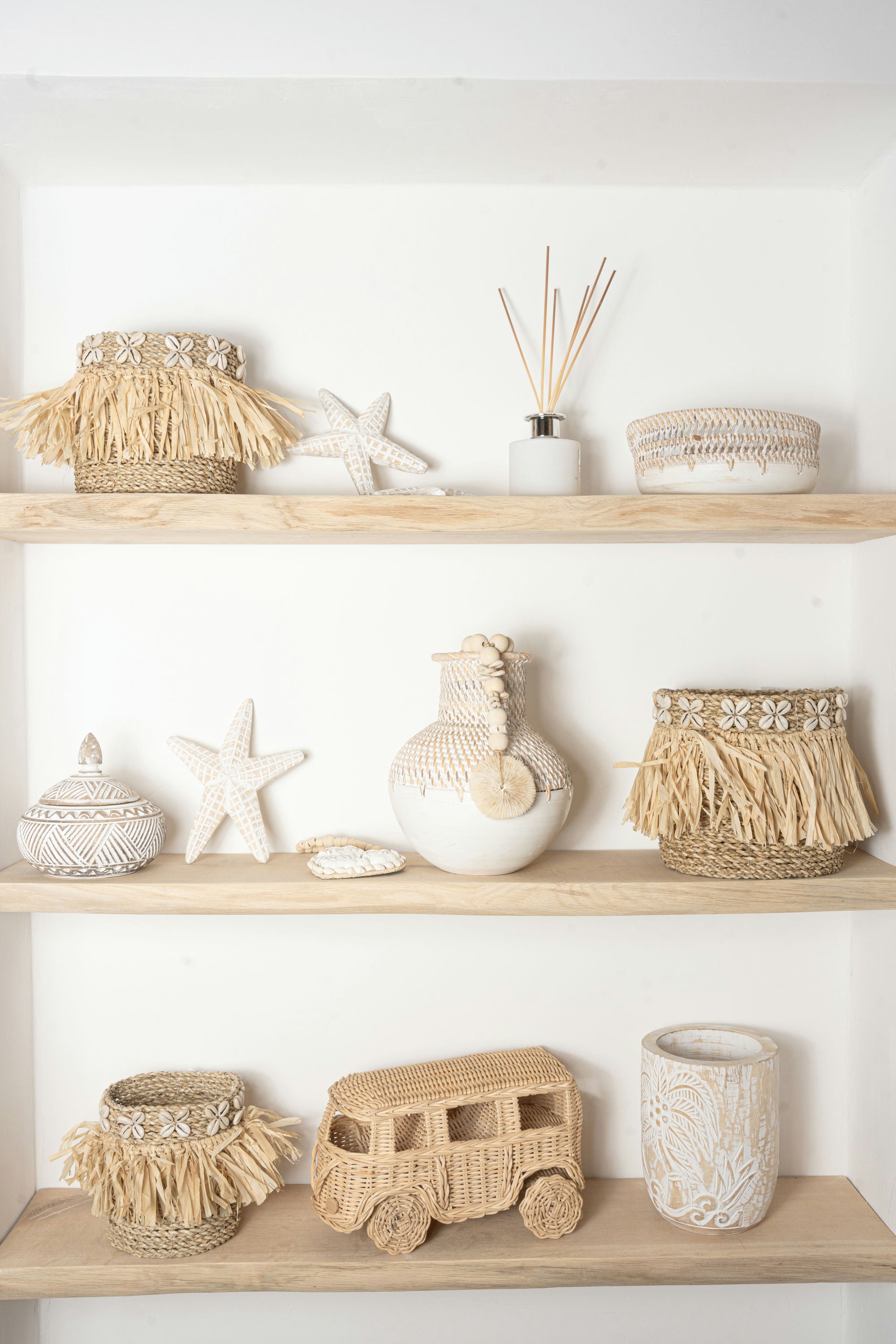 Breng de warmte van Ibiza in huis met onze collectie wonen. Van zachte kussens tot wanddecoratie en stijlvolle manden: alles ademt bohemian sfeer. Natuurlijke materialen zoals rotan, katoen en hout zorgen voor rust en karakter in je interieur. De kleuren zijn zacht, de vormen organisch, en elk item brengt een stukje eilandgevoel in je ruimte. Of je nu een hoekje wilt opfrissen of je hele huis een make-over geeft – met onze woonitems creëer je moeiteloos een ontspannen, zonnige vibe. Laat je inspireren en geef je huis de Ibiza touch die het verdient.