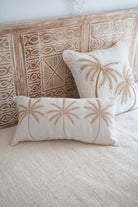 Product gegevens: Sfeervol kussen met geborduurde palmbomen. Met rits aan de achterkant