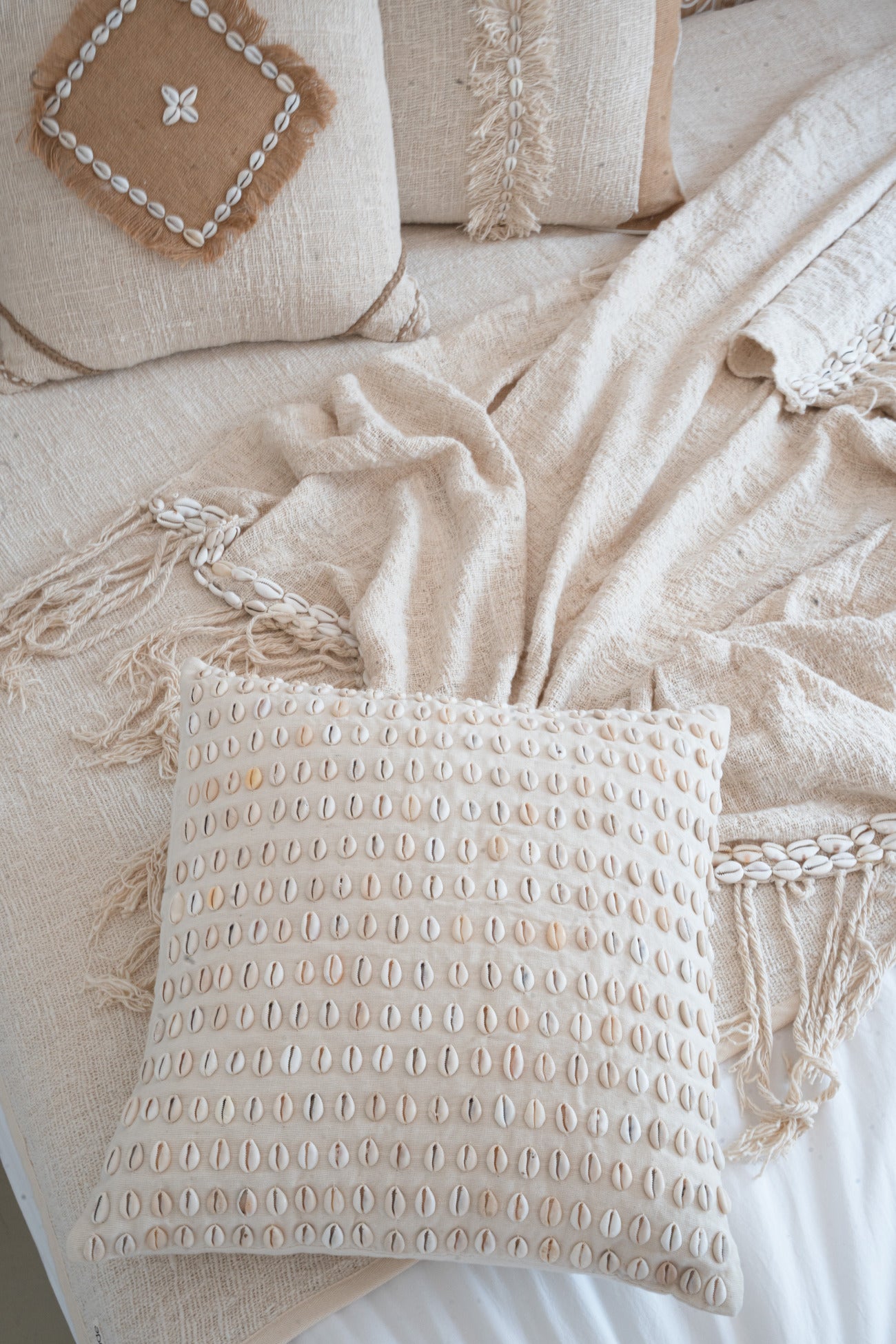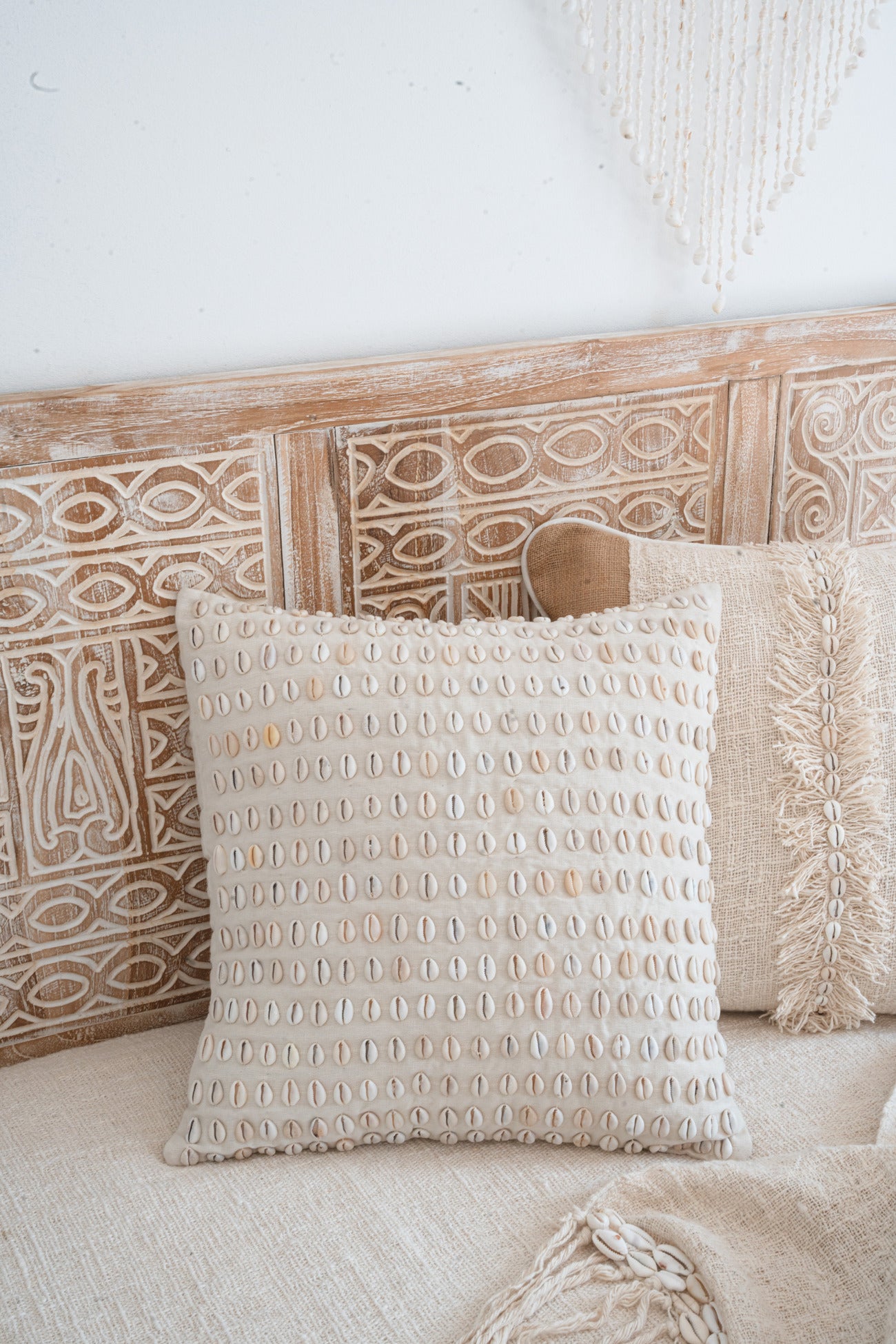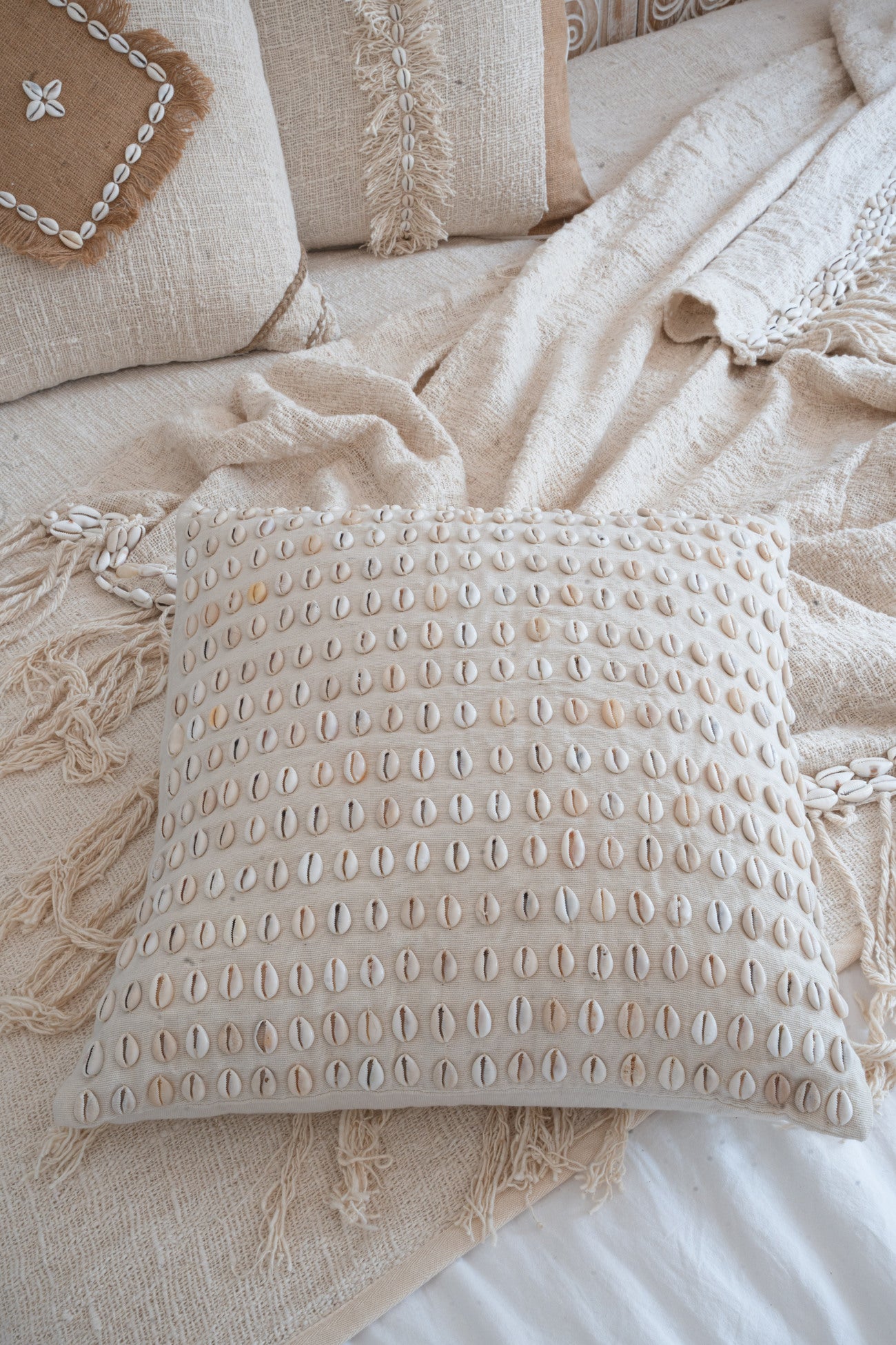 De Pillow Shell Paradise brengt direct bohemian vibes in elke ruimte. Gemaakt van in de kleur off white. Perfect om te mixen met manden, plaids of rotan accessoires. Bestel vandaag nog en maak jouw styling compleet.