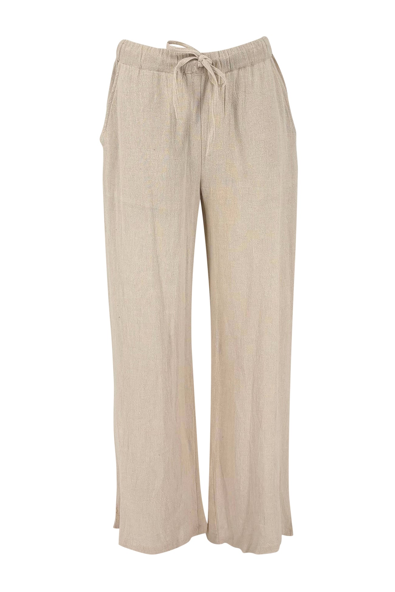 Product gegevens: Wijde broek met steekzakken en elastiek met een trekkoord in de tailleband