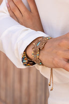 Product gegevens: Armband met een combinatie van kralen en macrame, heeft een schuifsluiting
