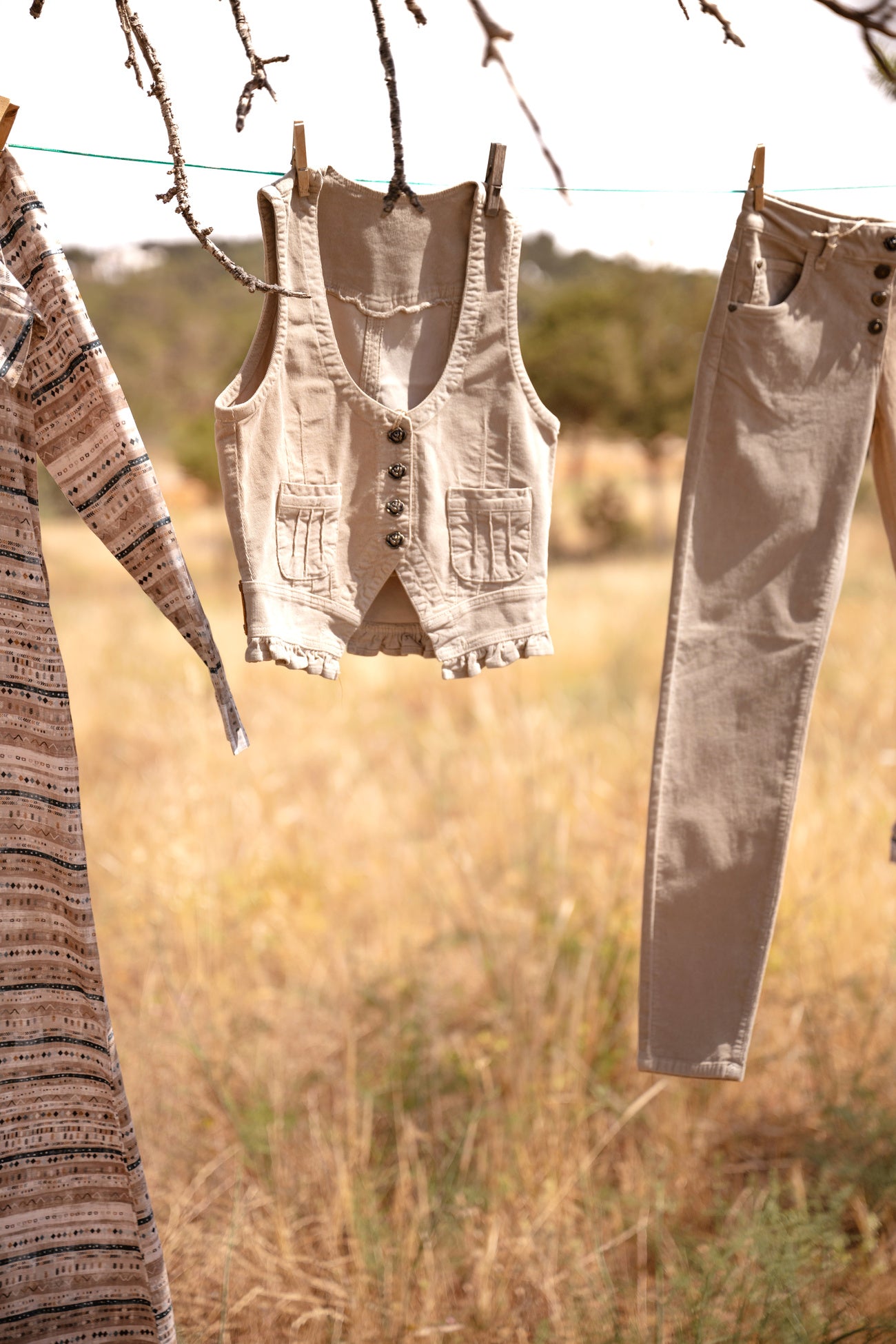 Product gegevens: Comfy model, heeft steekzakken, kan gestrikt worden en heeft een decoratieve band op de zijkant