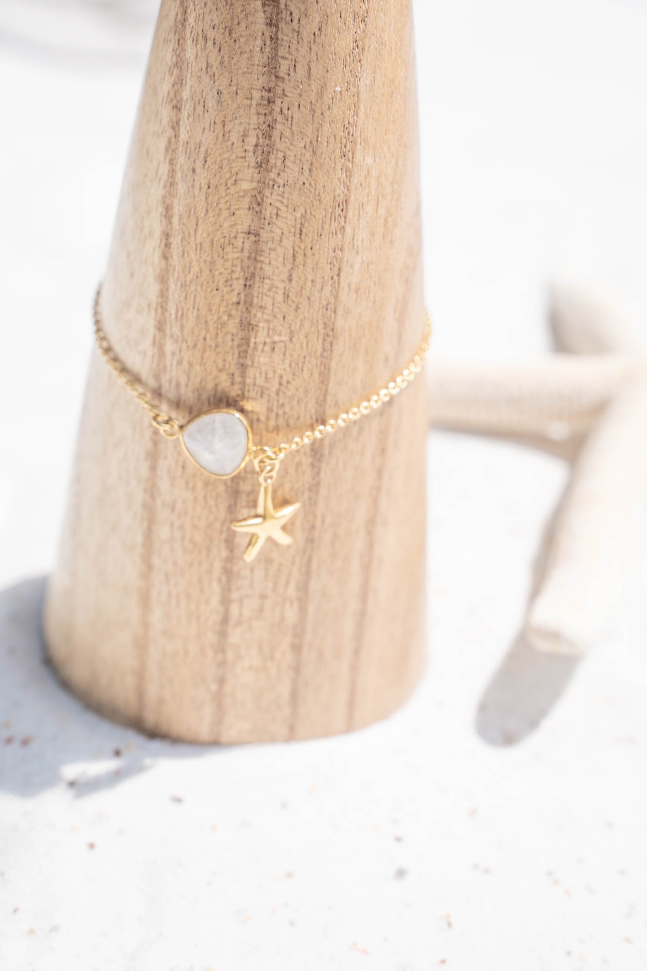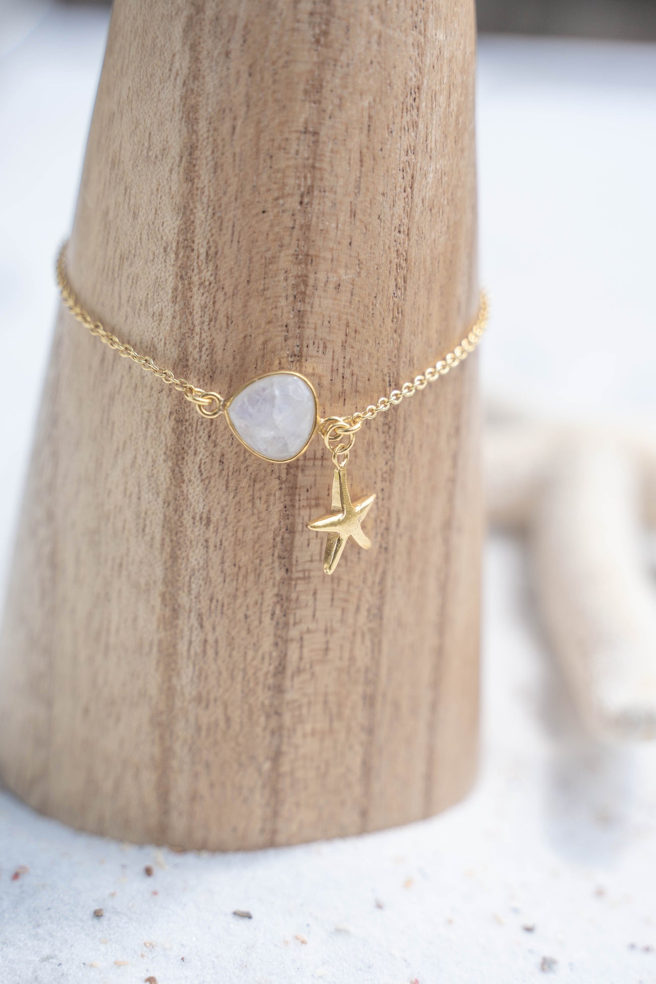 Dit sieraad heeft een stevige basis van messing en is afgewerkt met een laagje echt goud. De combinatie zorgt voor een warme glans en een luxe uitstraling. Draag met zorg – vermijd water, parfum en schoonmaakmiddelen – dan blijft je sieraad lang mooi.