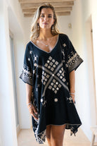 Short Kaftan Hilla Sundara Black komt uit The Luxury Resort collectie van ibizamode. Deze luxe kaftan is gemaakt van zacht katoen dat licht en comfortabel op je huid aanvoelt. De diepe zwarte kleur geeft direct hotel-chique allure met een vrije Ibiza spirit. Zo voelt Hilla meteen als jouw stuk voor dagen vol zon en lange lunches.