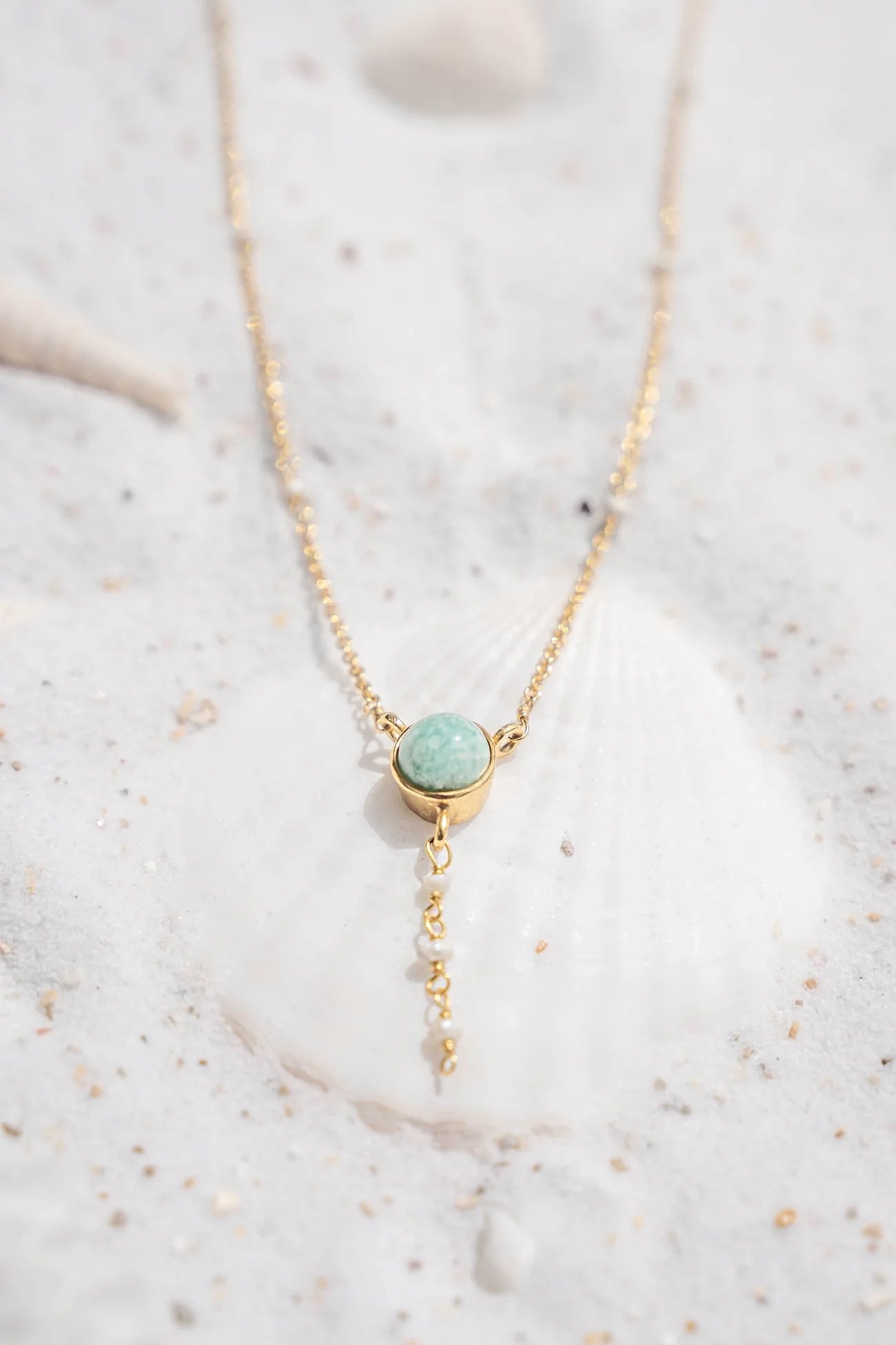 Product gegevens: Ketting met karabijn sluiting en parel bedel/hanger, heeft geen verlengstukje, Messing met een laagje echt goud (18K). De ketting wordt geleverd in een mooie geschenk verpakking