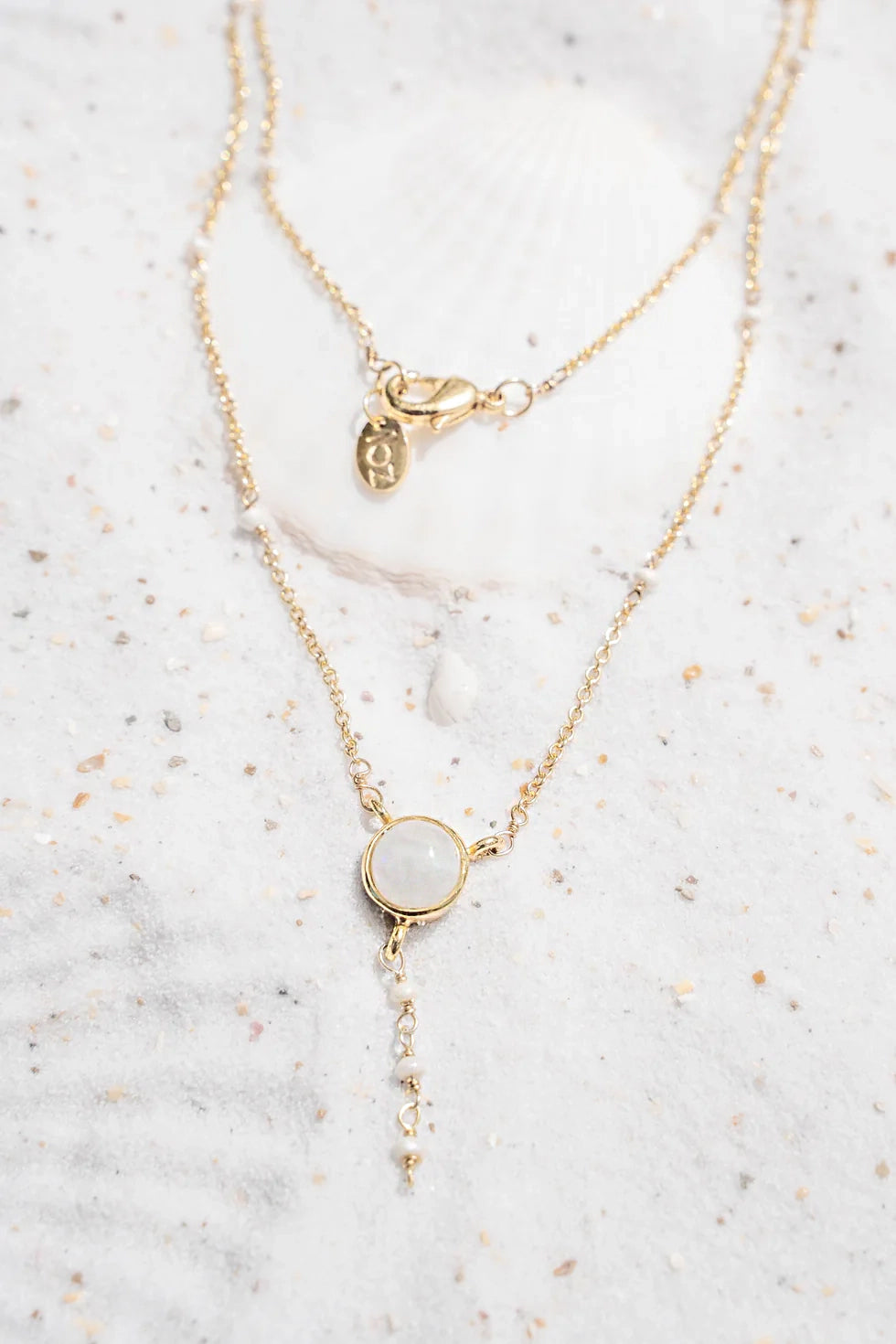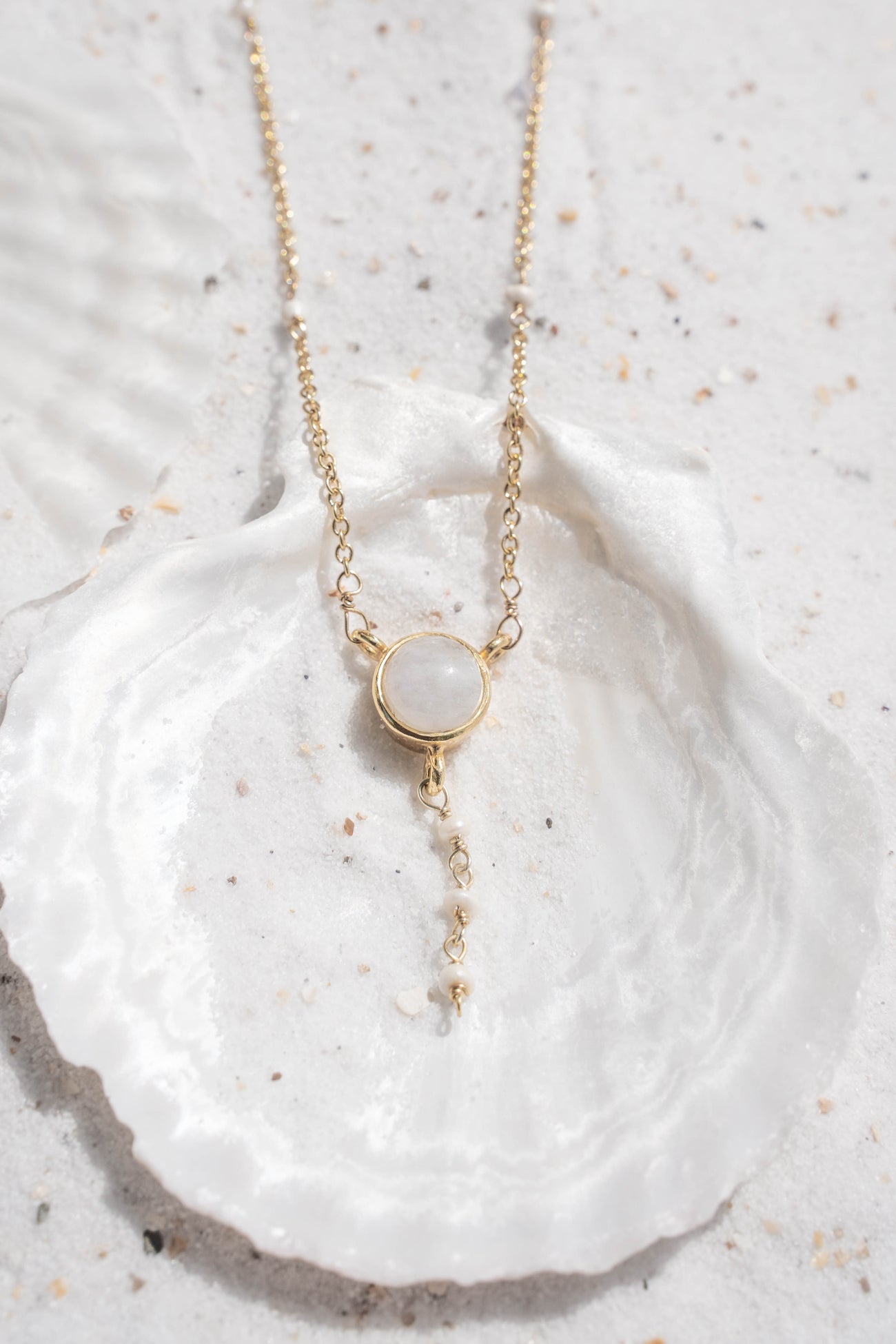 Product gegevens: Ketting met karabijn sluiting en parel bedel/hanger, heeft geen verlengstukje, Messing met een laagje echt goud (18K). De ketting wordt geleverd in een mooie geschenk verpakking