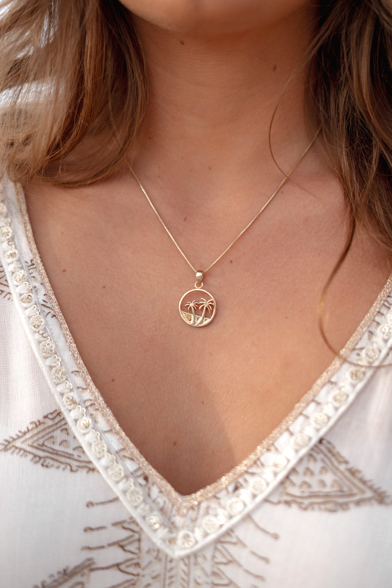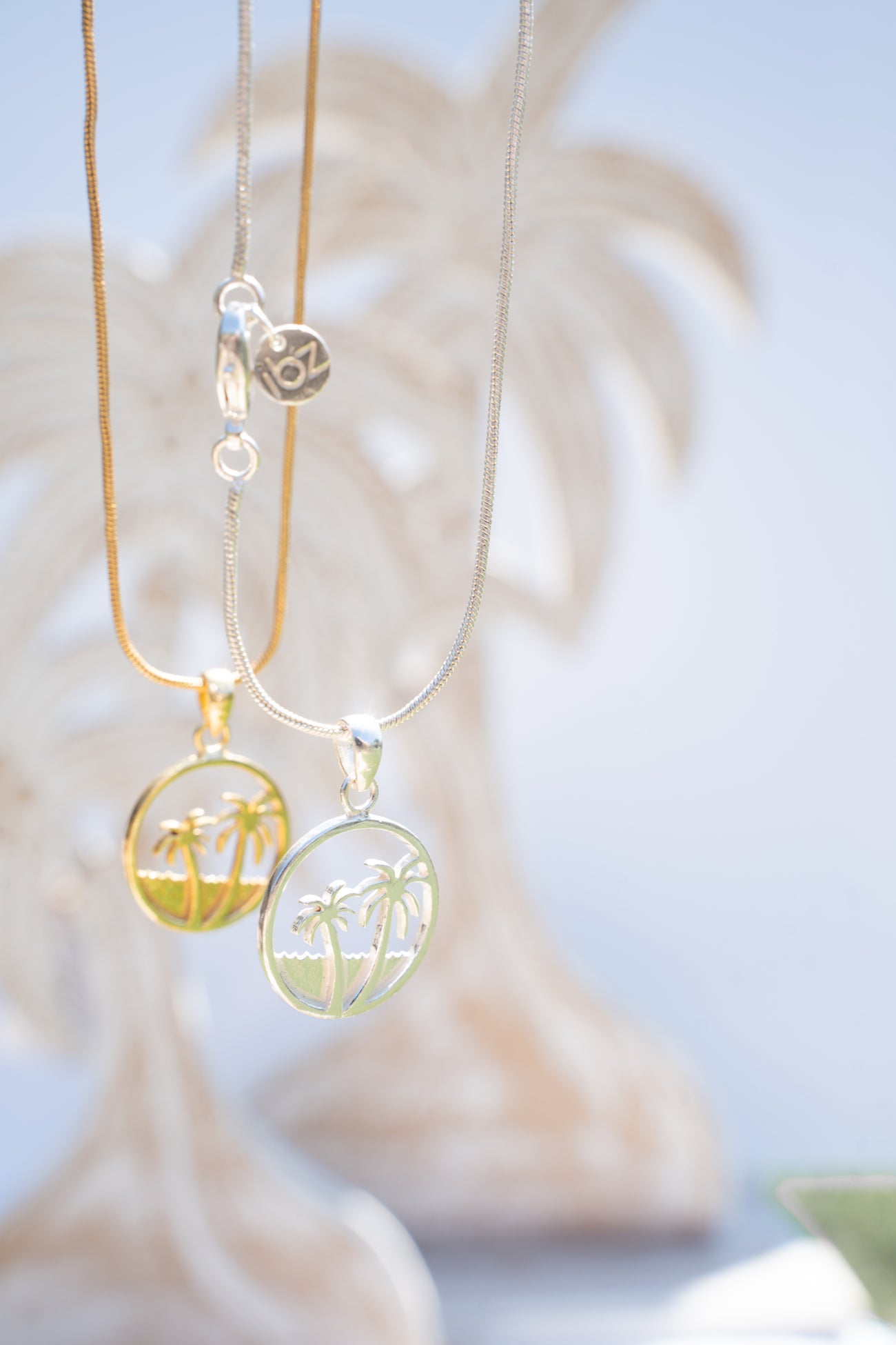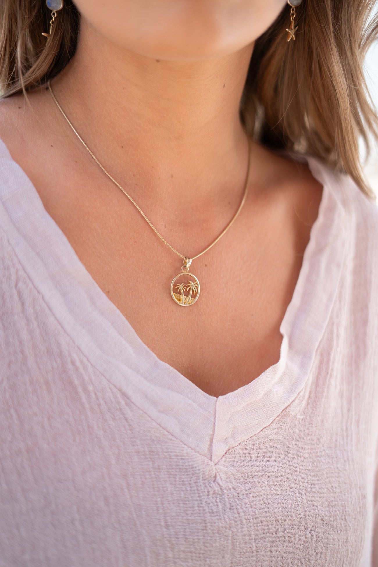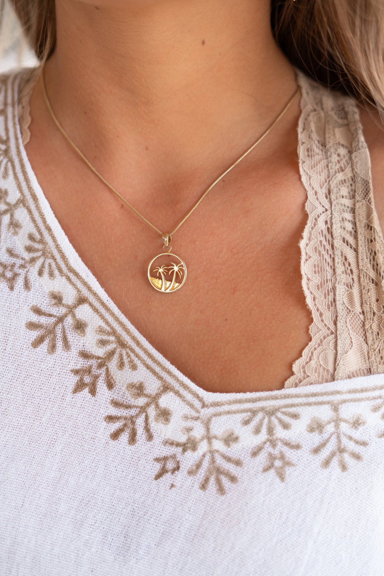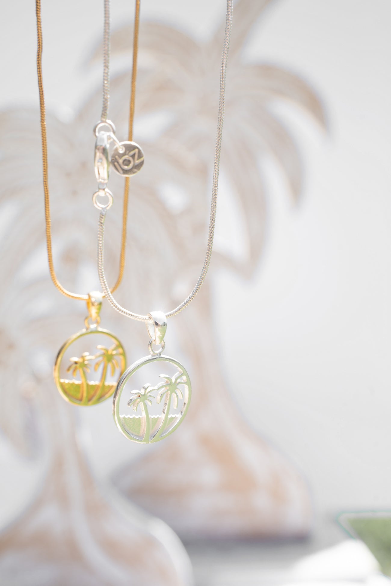 Product gegevens: Ketting met karabijn sluiting en palmtree bedel/hanger, heeft geen verlengstukje, Messing met een laagje echt goud (18K). De ketting wordt geleverd in een mooie geschenk verpakking