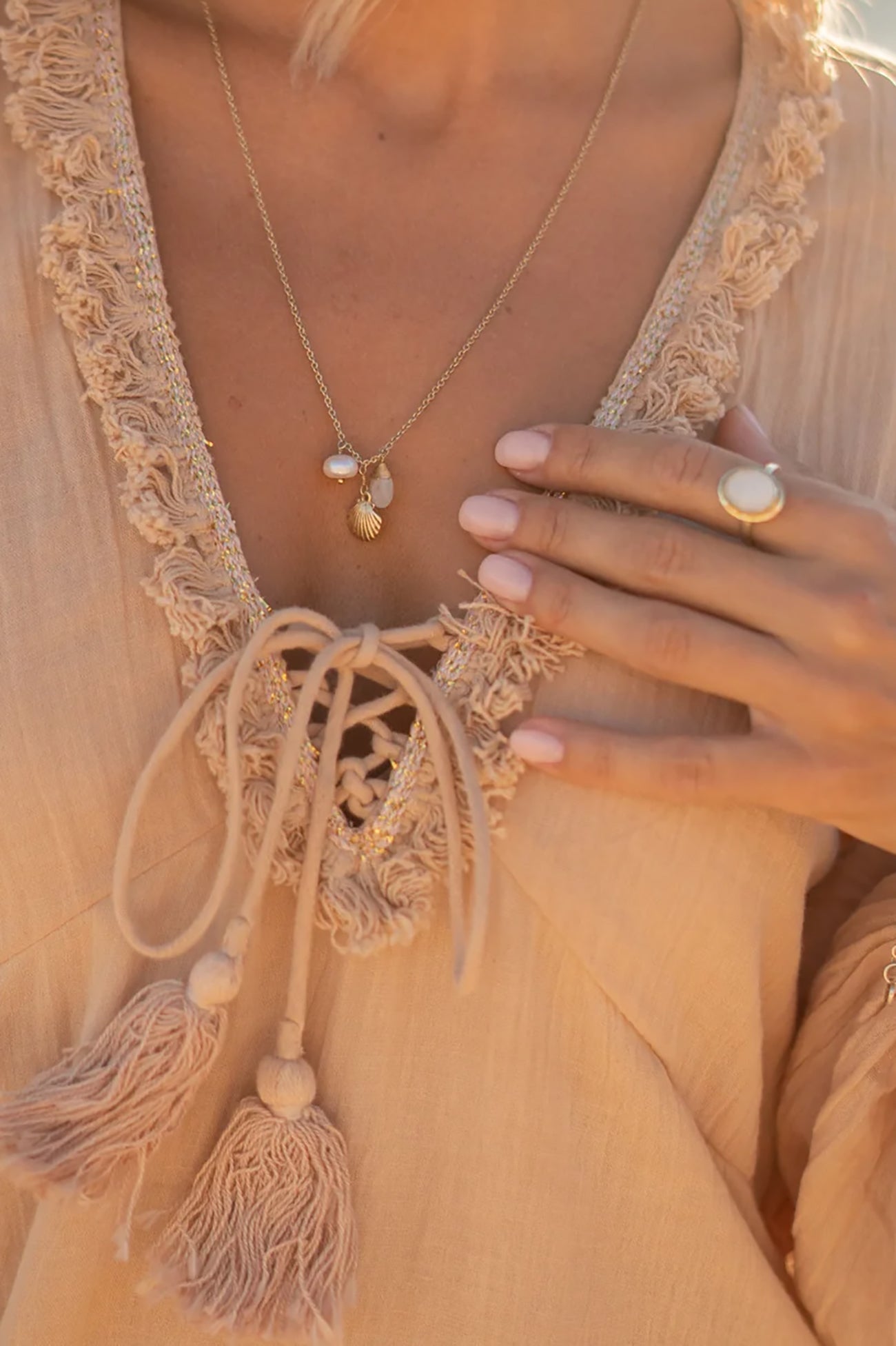 Dit sieraad heeft een stevige basis van messing en is afgewerkt met een laagje echt goud. De combinatie zorgt voor een warme glans en een luxe uitstraling. Draag met zorg – vermijd water, parfum en schoonmaakmiddelen – dan blijft je sieraad lang mooi.