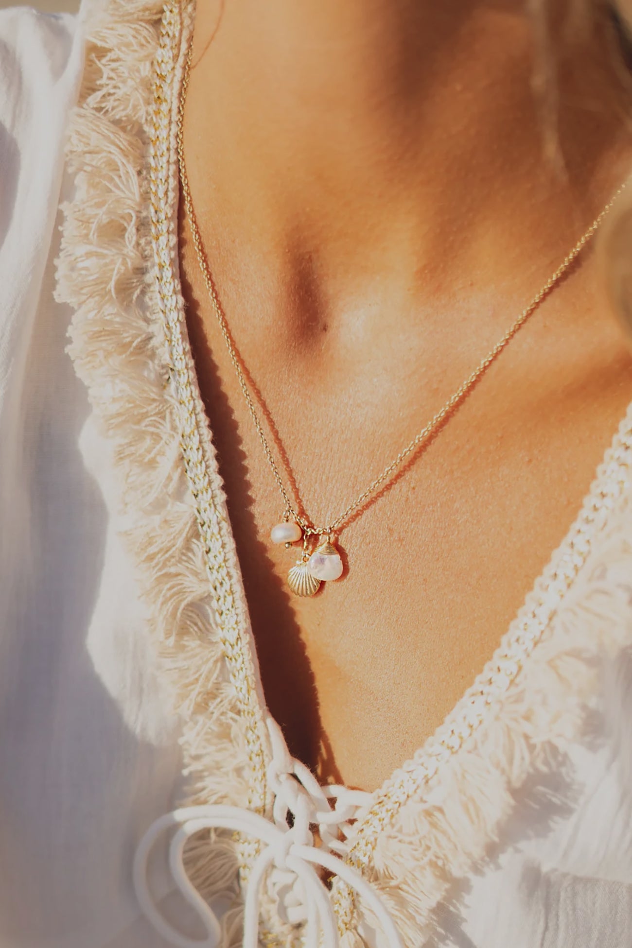 Product gegevens: Ketting met karabijn sluiting en schelp bedel/hanger, heeft geen verlengstukje. Messing met een laagje echt goud (18). De ketting wordt geleverd in een mooie geschenk verpakking