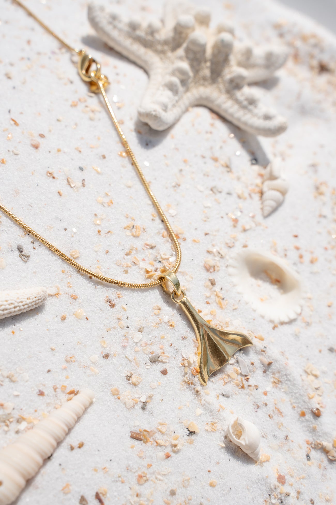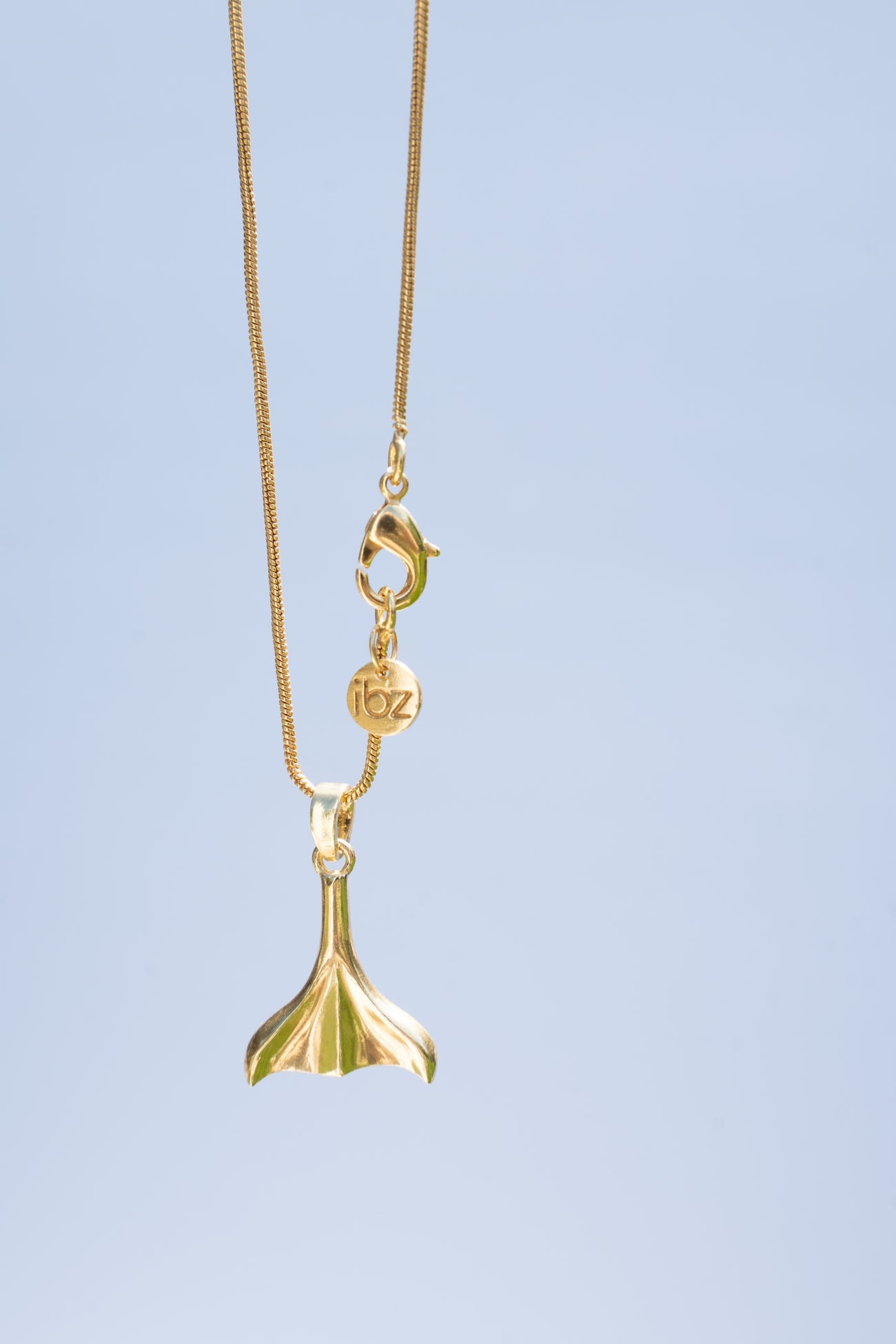 Product gegevens: Ketting met karabijn sluiting en bedel/hanger van een walvisstaart, heeft geen verlengstukje, Messing met een laagje echt goud (Gold Plated). Wordt geleverd in een mooie geschenk verpakking