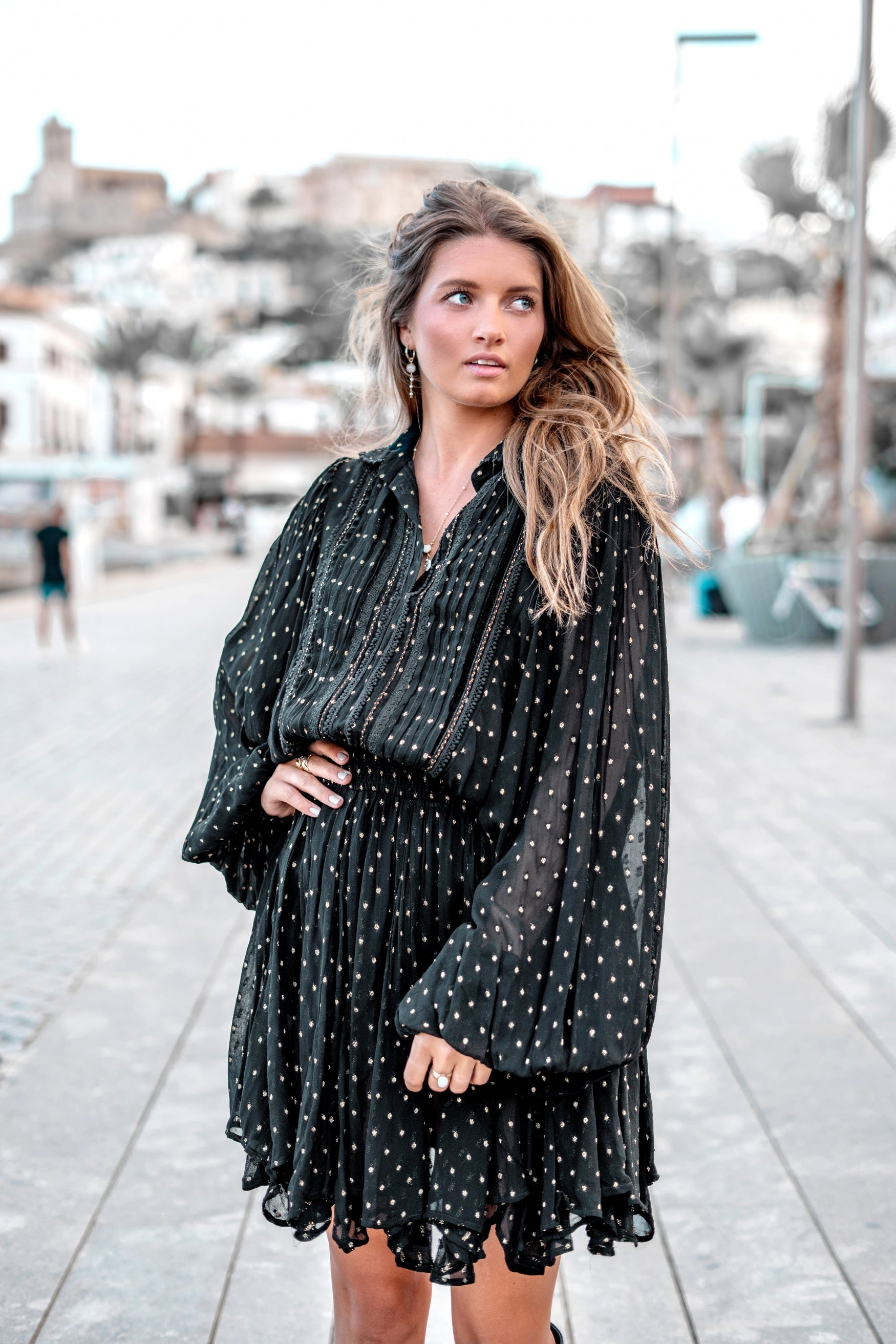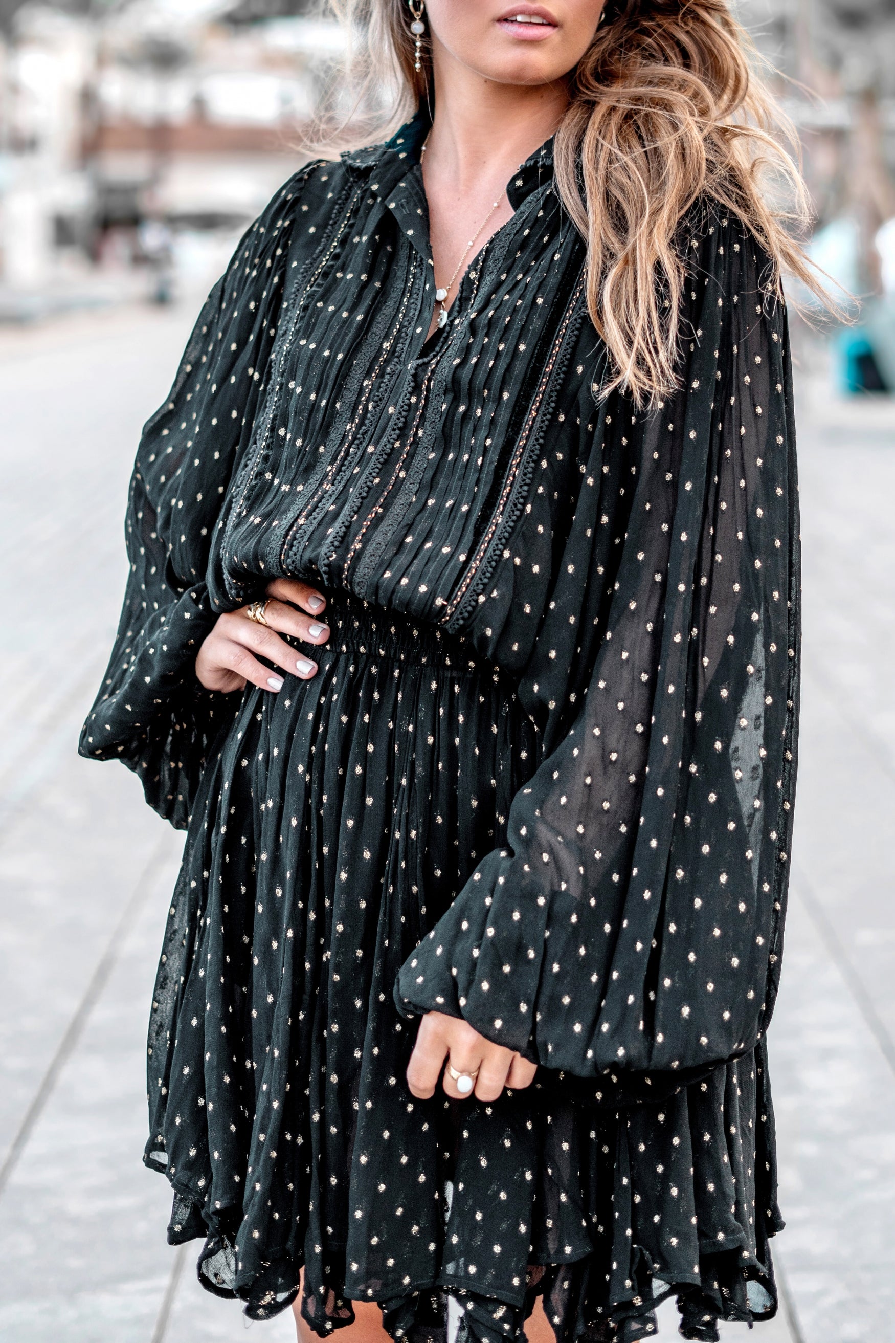 Met de Short Dress Bliss Black van ibzmode ben je klaar voor elke summer getaway. Hoge hals, Knoopjes bij de buste, Bewerkt met gouden lurex garen en crochet, Ballonmouwen met elasti Gemaakt van 60% rayon, 40% katoen, licht en comfortabel voor warme dagen. Bestel snel en geniet van de bohemian lifestyle, elke dag opnieuw.