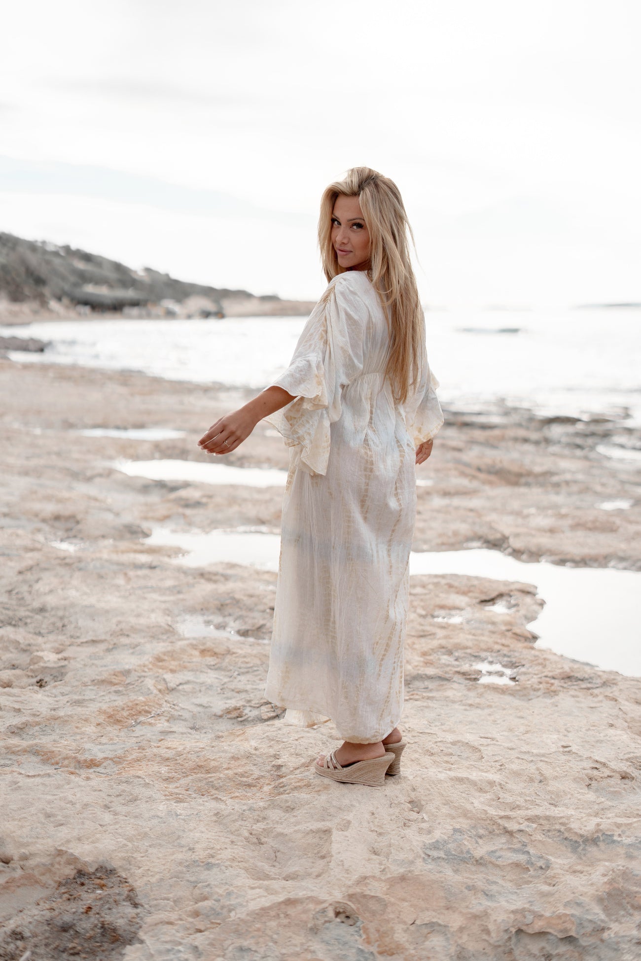 Long Kimono Aine Lurex White/Beige