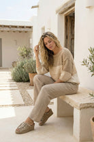 Deze Jumper Unica Trenza Sand Multi van ibzmode in het sand ademt Ibiza vibes. Heeft een ronde hals, is grof gebreid Voeg deze must-have toe aan je zomergarderobe.