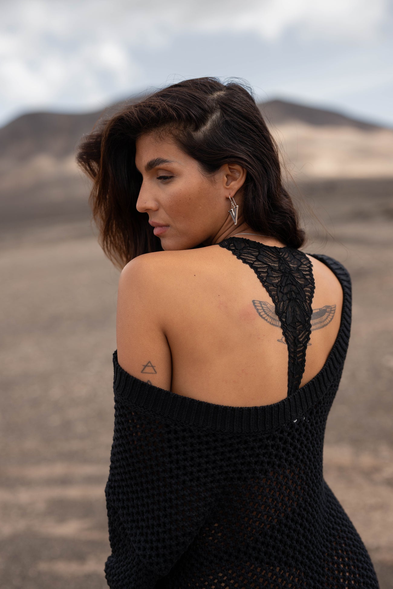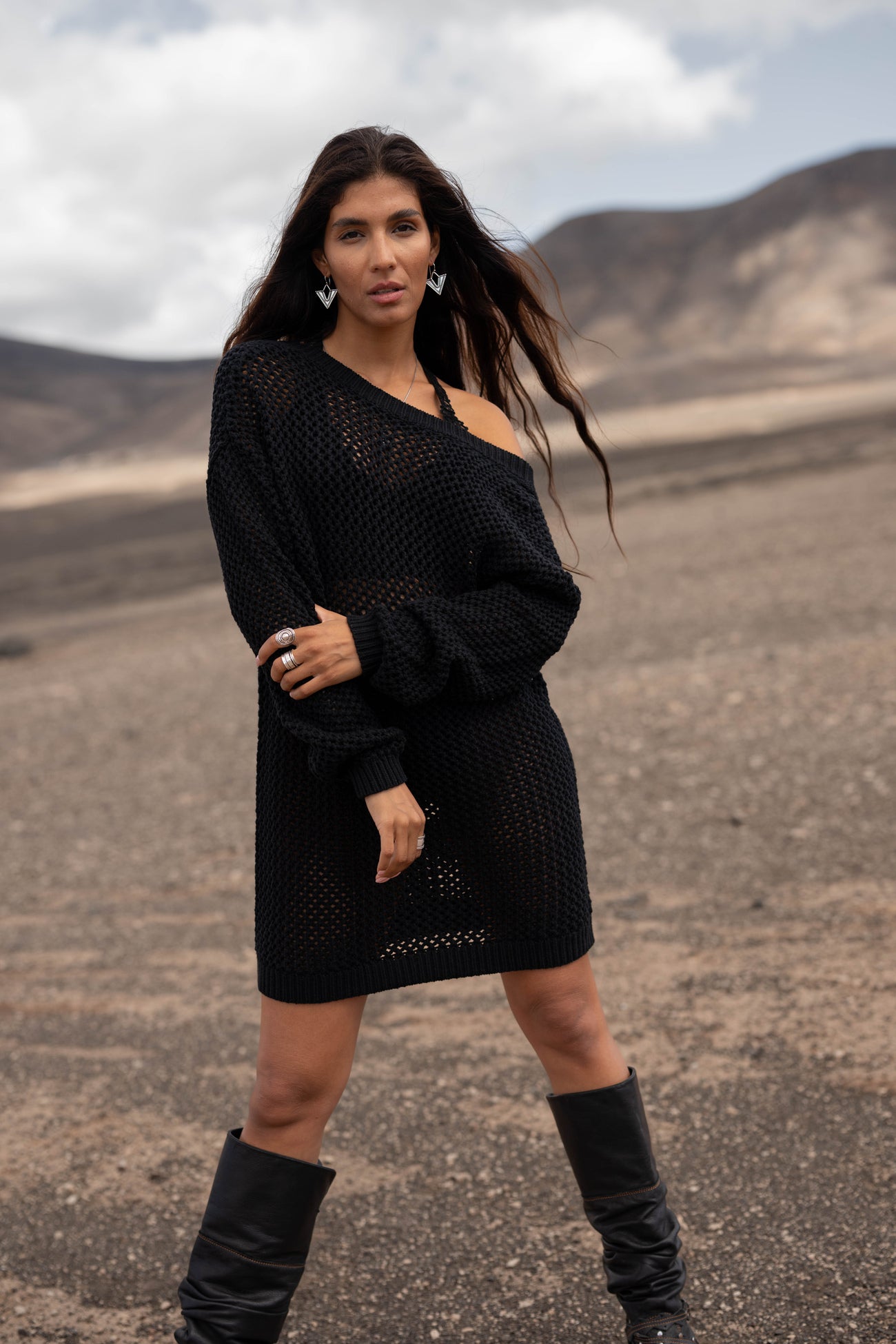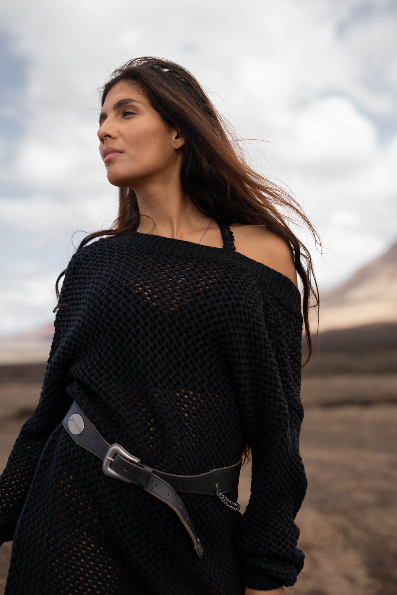 Product gegevens: Is off-shoulder, heeft een grof gehaakt patroon