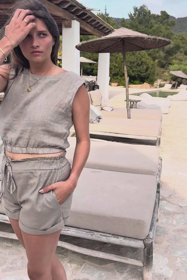Ervaar het comfort van de Short Senon Linen Taupe, perfect voor je zomerse garderobe. in de kleur taupe Gemaakt van 100% katoen linnen – luchtig en natuurlijk. Voor elke setting: luchtig en toch verfijnd.