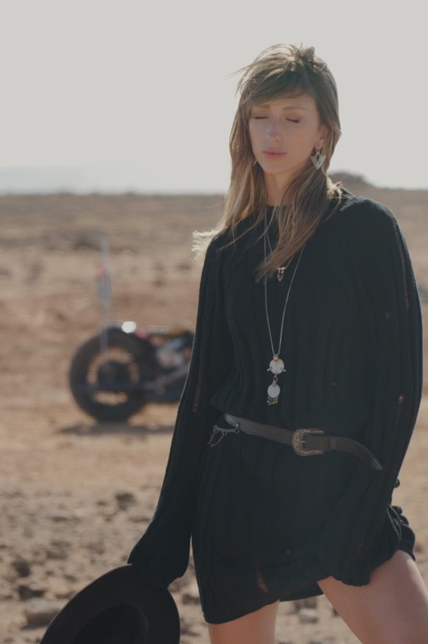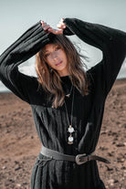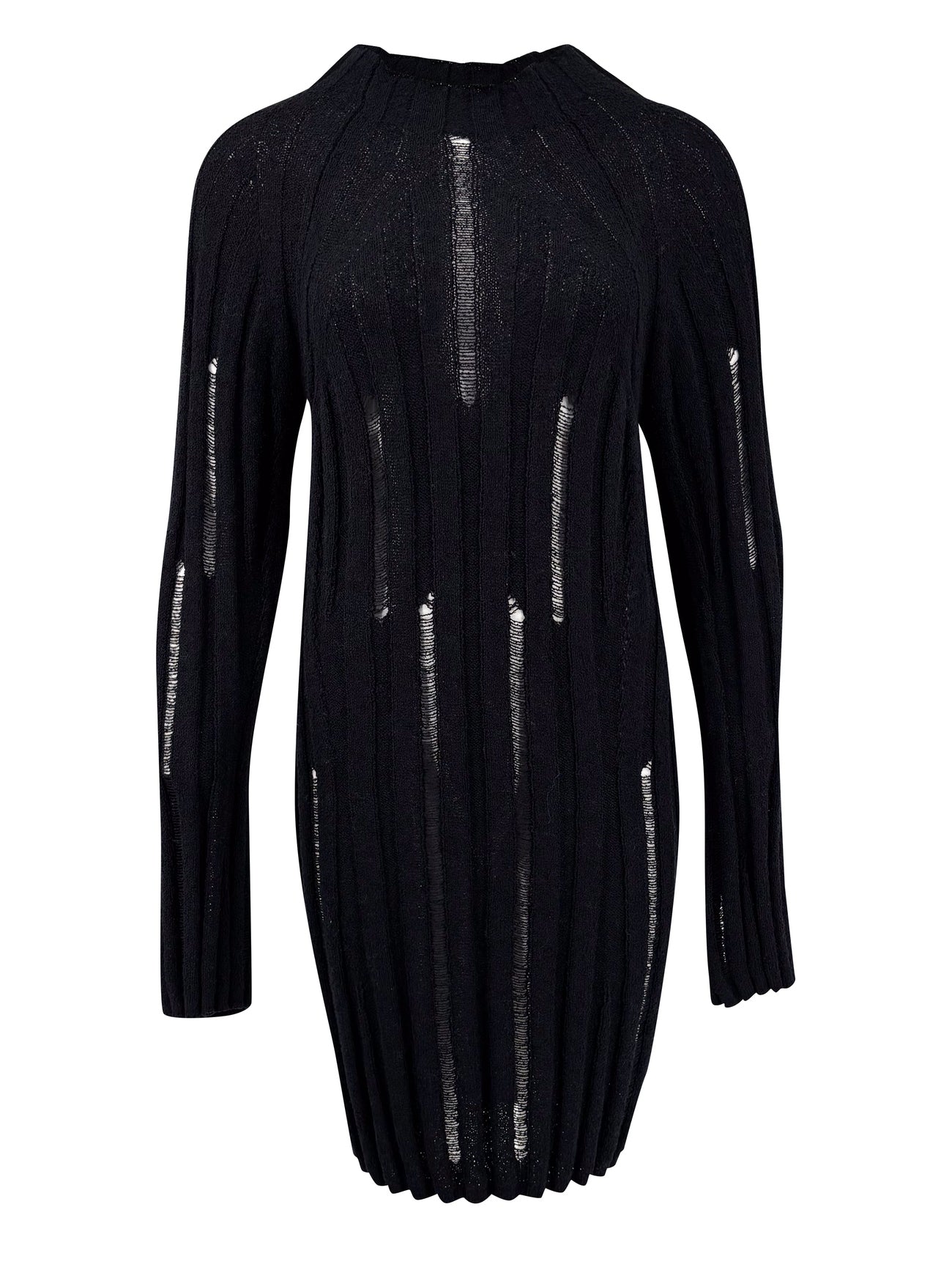 Product gegevens: Heeft een ronde hooggesloten hals, is fijn gebreid, heeft opengewerkte details, inclusief onderjurkje