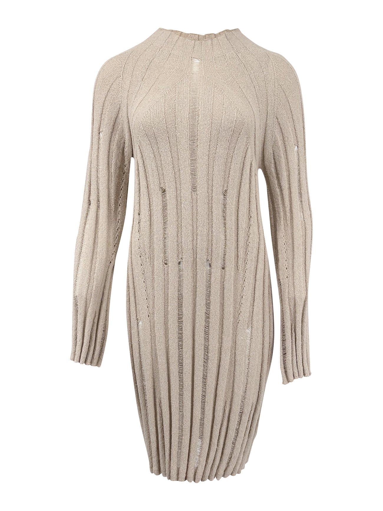 Product gegevens: Heeft een ronde hooggesloten hals, is fijn gebreid, heeft opengewerkte details, inclusief onderjurkje