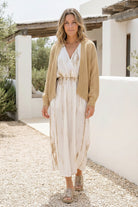 Deze Cardigan Pura Trenza Sand van ibzmode in het sand ademt Ibiza vibes. Heeft een grof gebreid patroon, heeft aan beide zijden een kleine split Gemaakt van 97% acrylic, 3% metal fiber, licht en comfortabel voor warme dagen. Shop nu bij ibizamode en straal deze zomer in stijl.