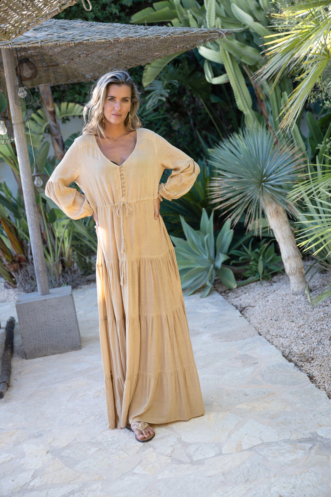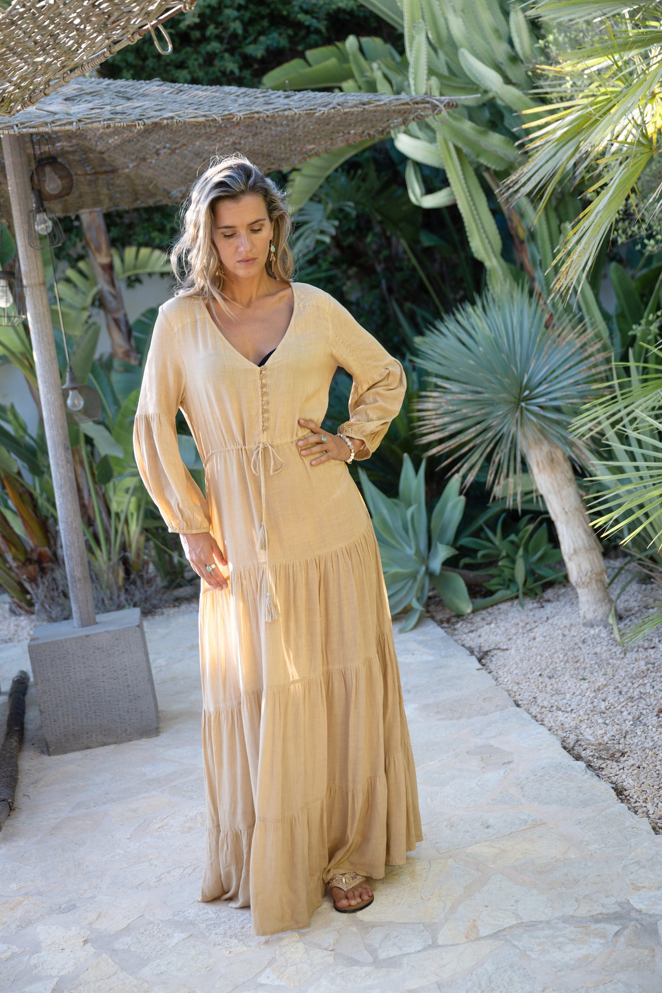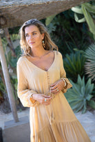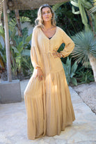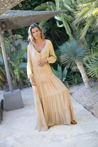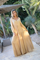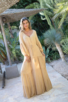 Golden Glow draait om balans. Rust in de tint. Kracht in de vorm. Deze jurk laat zien dat bohemian stijl ook zonder print sterk kan zijn.