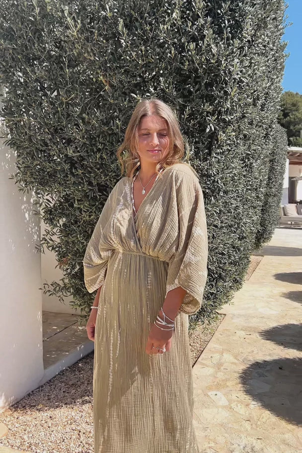 Allereerst valt het materiaal op. De jurk is gemaakt van 100% katoen en voelt ademend en licht aan op de huid. De muslin structuur draagt comfortabel en beweegt soepel mee. Hierdoor blijft de jurk prettig tijdens warme temperaturen. Dat maakt Malia Sera ideaal voor stranddagen en beach club momenten.