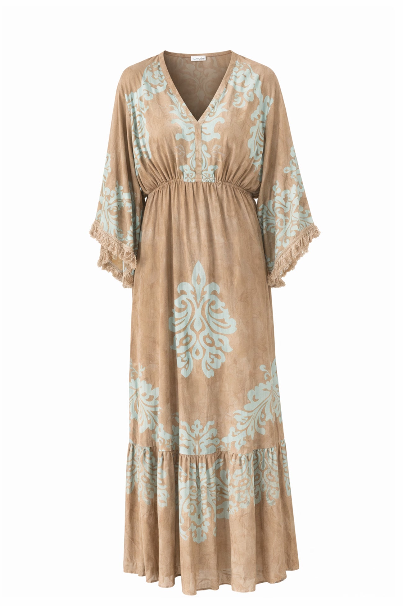De Dress Mireya Calinda Taupe is een krachtig ontwerp binnen de Baroque Elegance collectie. De rijke Jacquard weving toont verfijnde Baroque ornamenten. Het patroon is ingeweven en niet geprint. Dat zorgt voor een luxe textuur.