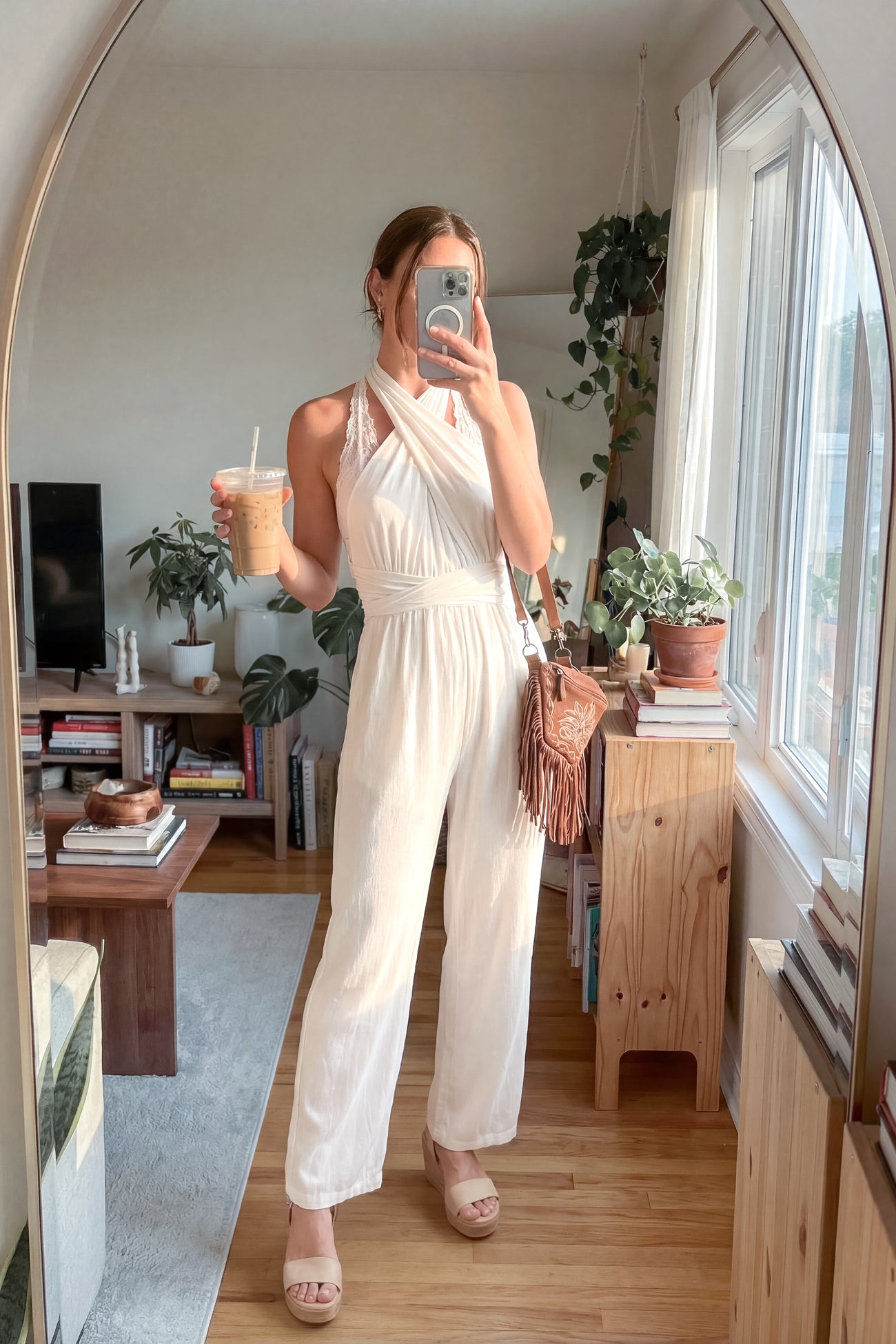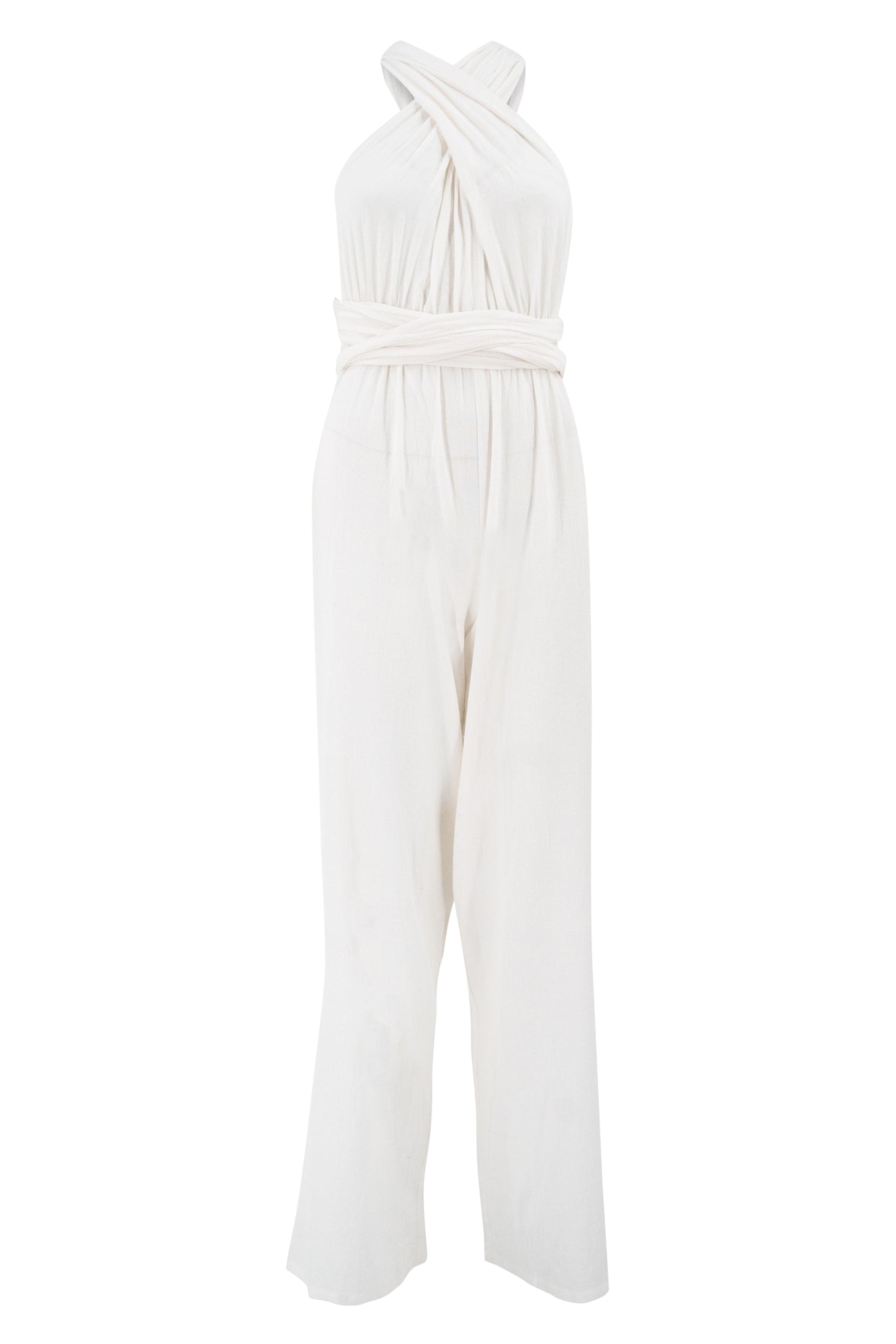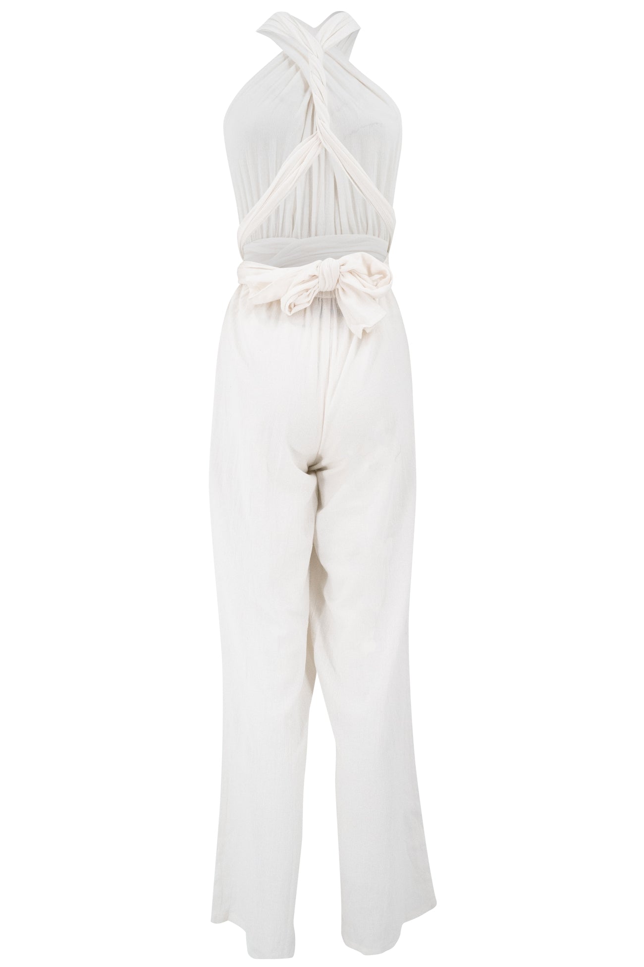Deze Naomi Jumpsuit van MOOST Wanted in het off white ademt Ibiza vibes. Heeft banden die gewikkeld en geknoopt kunnen worden, heeft een broekje aan de binnenzijde van de Het natuurlijke materiaal zorgt voor een luchtige feel. Voeg deze must-have toe aan je zomergarderobe.