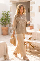 Creëer jouw ultieme zomerse look met de Pantalon Agar Bordado Sand in de kleur sand. Luchtige pantalon, met steekzakken, heeft een elastische band De luchtige stof voelt zacht aan op je huid. Laat de zomer maar komen – jij bent er klaar voor.