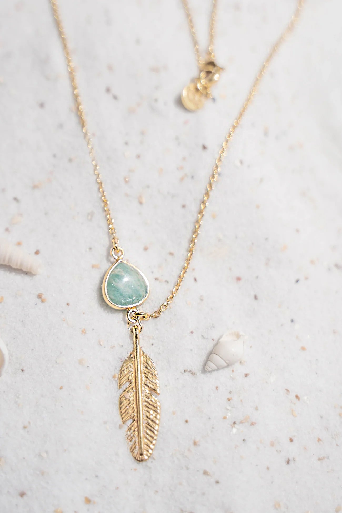 Single Necklace Feather Amazonite Gold/Aqua