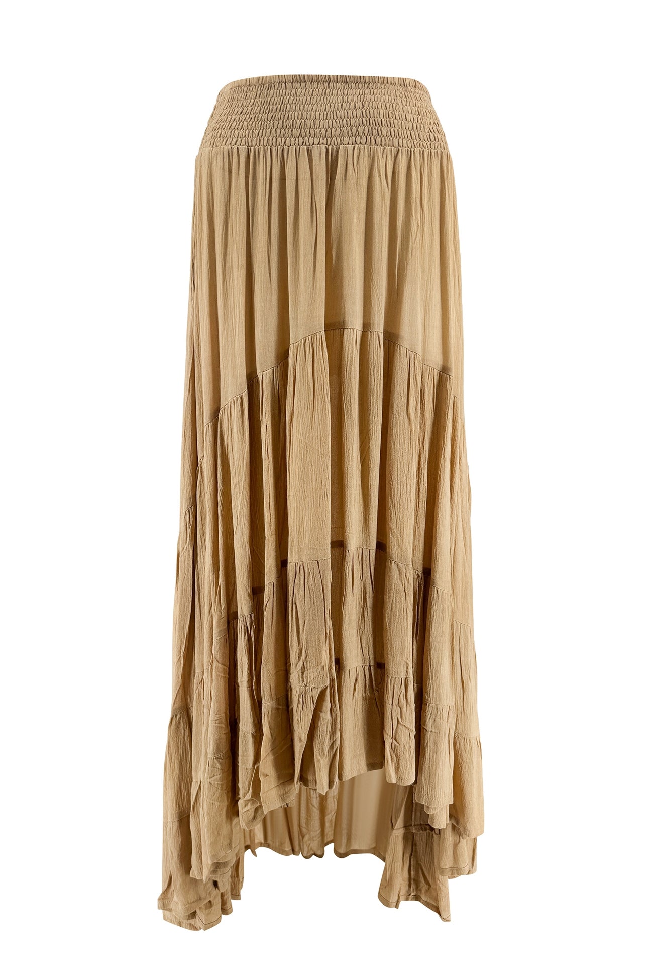 De Skirt Santi Taupe bohemian rok straalt rust en warmte uit binnen de Golden Glow collectie van ibzmode. De zachte taupe tint vormt een natuurlijke basis die eenvoudig te combineren is met zowel prints als effen items. Hier ligt de nadruk op silhouet en beweging.