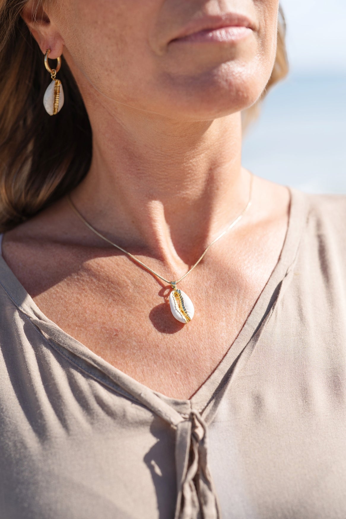Dit sieraad heeft een stevige basis van messing en is afgewerkt met een laagje echt goud. De combinatie zorgt voor een warme glans en een luxe uitstraling. Draag met zorg – vermijd water, parfum en schoonmaakmiddelen – dan blijft je sieraad lang mooi.
