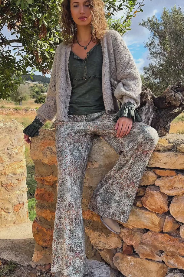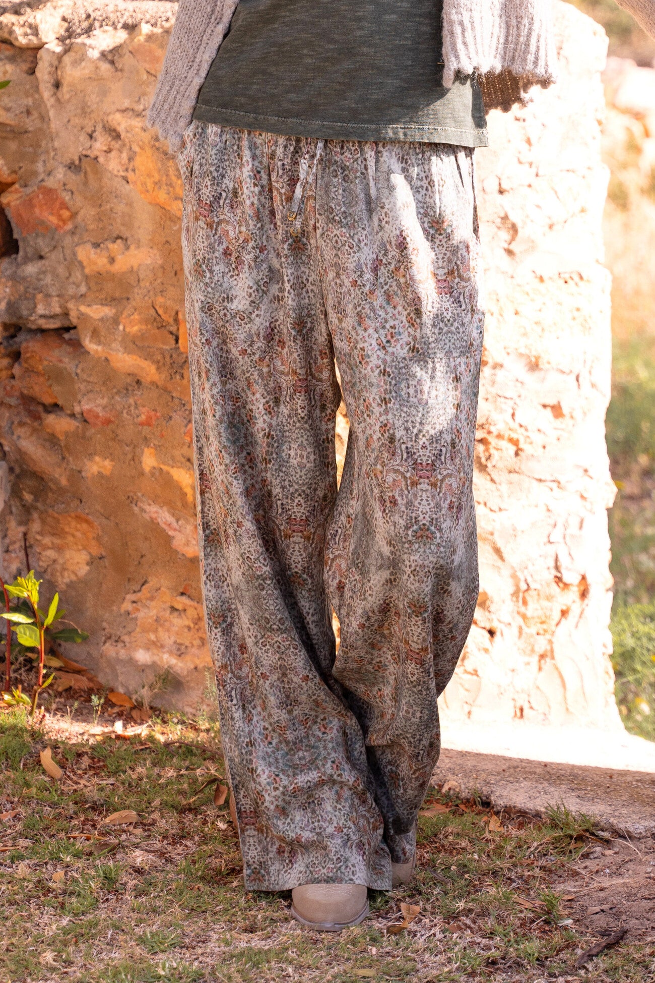 Product gegevens: Wijde broek gemaakt van soepelvallende stof met mooie print die makkelijk te combineren is