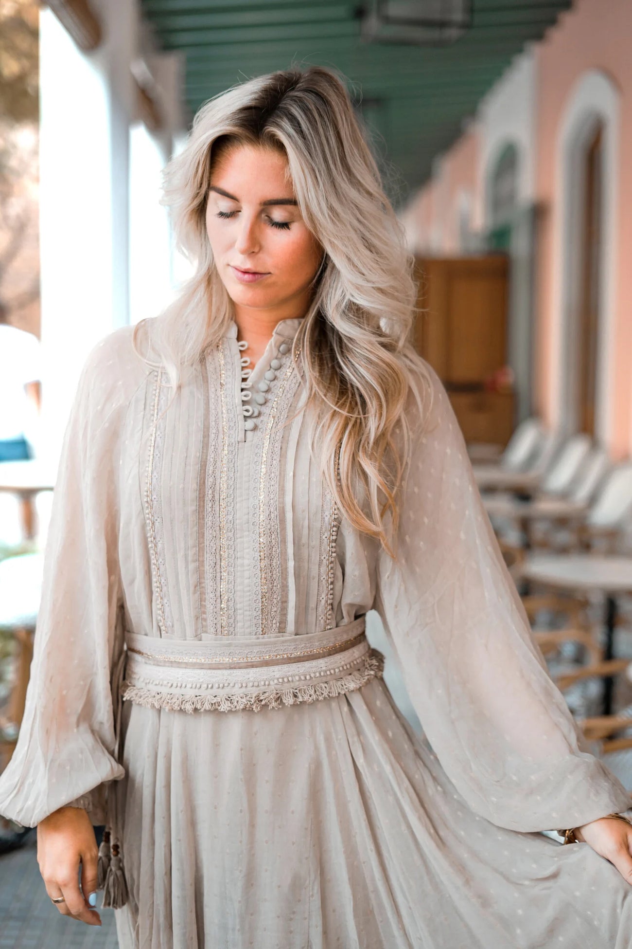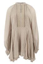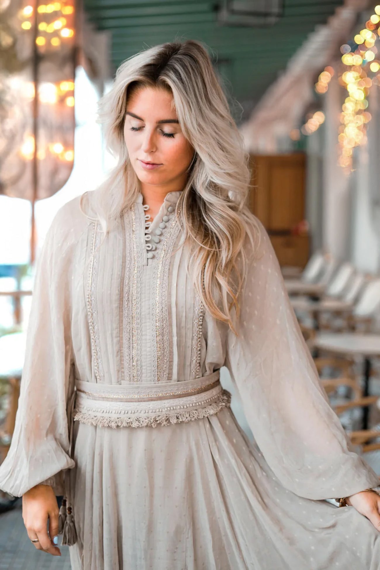 Geef jouw garderobe een update met de Tunic Bliss Taupe, ontworpen voor zonnige dagen. Hoge hals, Knoopjes bij de buste, Bewerkt met gouden lurex garen en crochet, Ballonmouwen met elasti Draag het met je favoriete accessoires voor een echte brands of Ibiza-look. Bestel snel en geniet van de bohemian lifestyle, elke dag opnieuw.