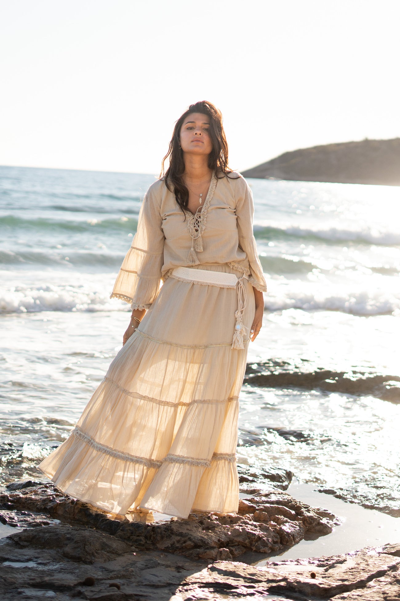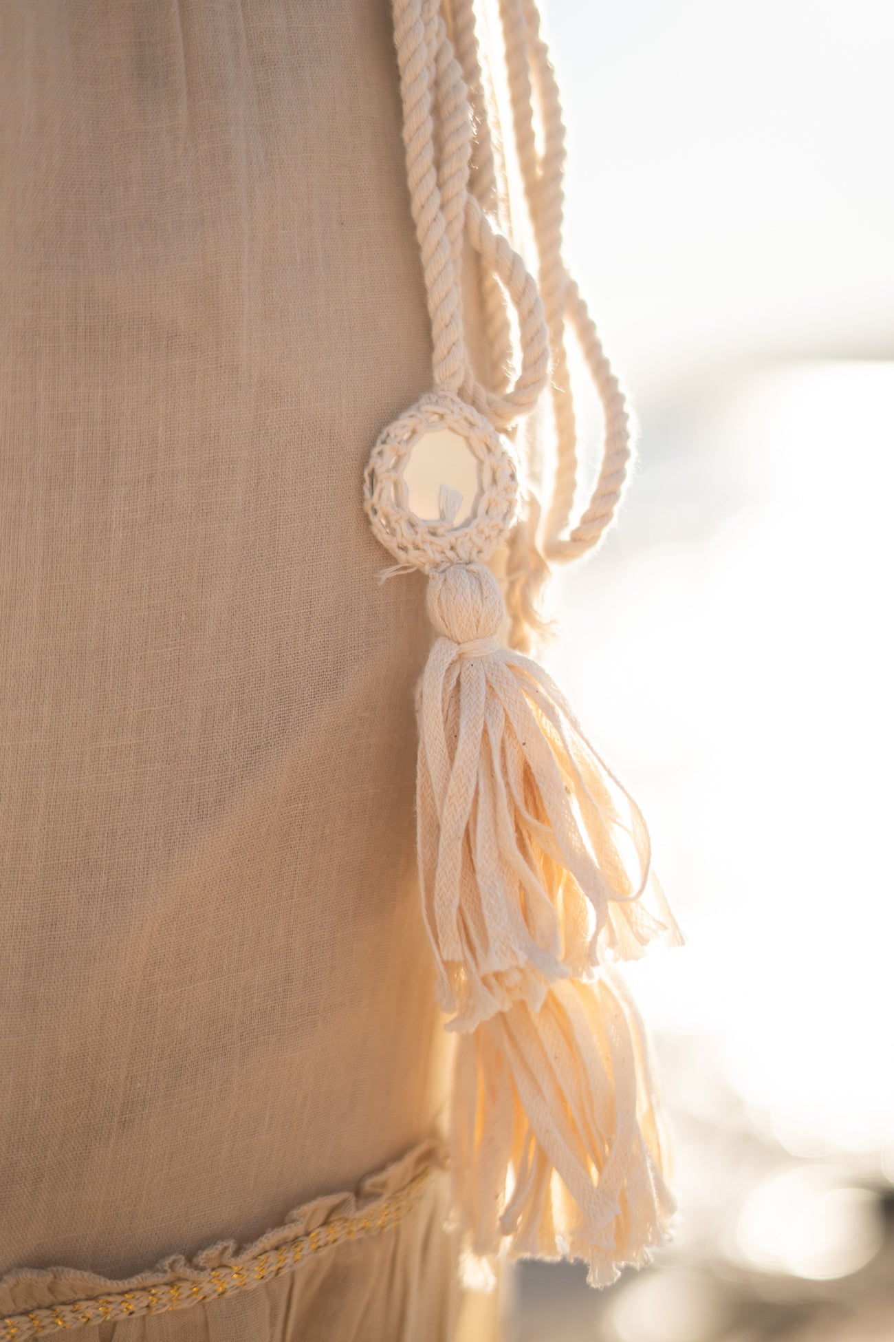 Geef jouw garderobe een update met de Belt Rosa Nyx Ivory, ontworpen voor zonnige dagen. Riem met dessin, sier franjes en kan gestrikt worden met de touwtjes waar kwastjes met sier spiegelt Laat de zomer maar komen – jij bent er klaar voor.
