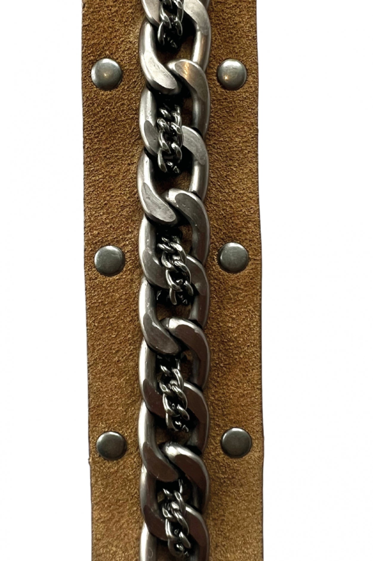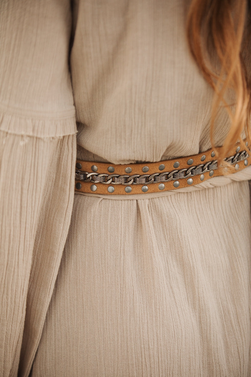 Creëer jouw ultieme zomerse look met de Nola suede metal belt in de kleur soft brown. Nu verkrijgbaar bij ibizamode – ontdek meer op Brands of Ibiza.