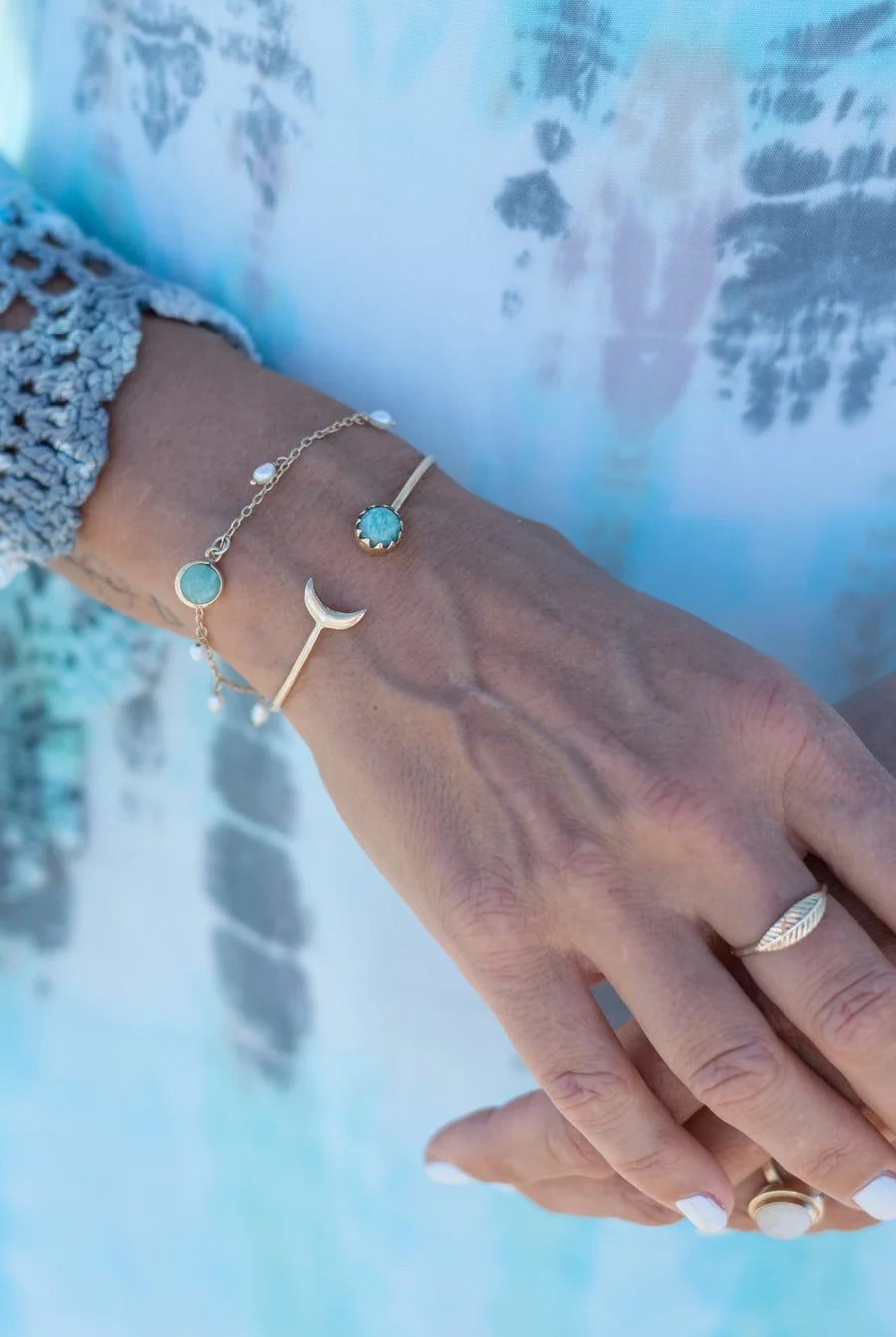 Ring Wide Drip Amazonite Gold/Aqua