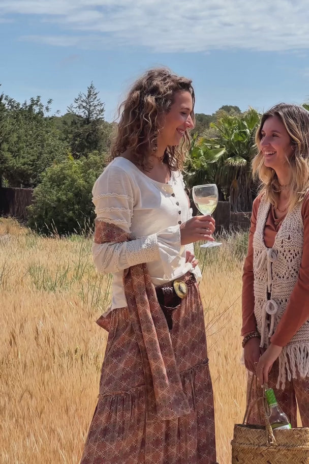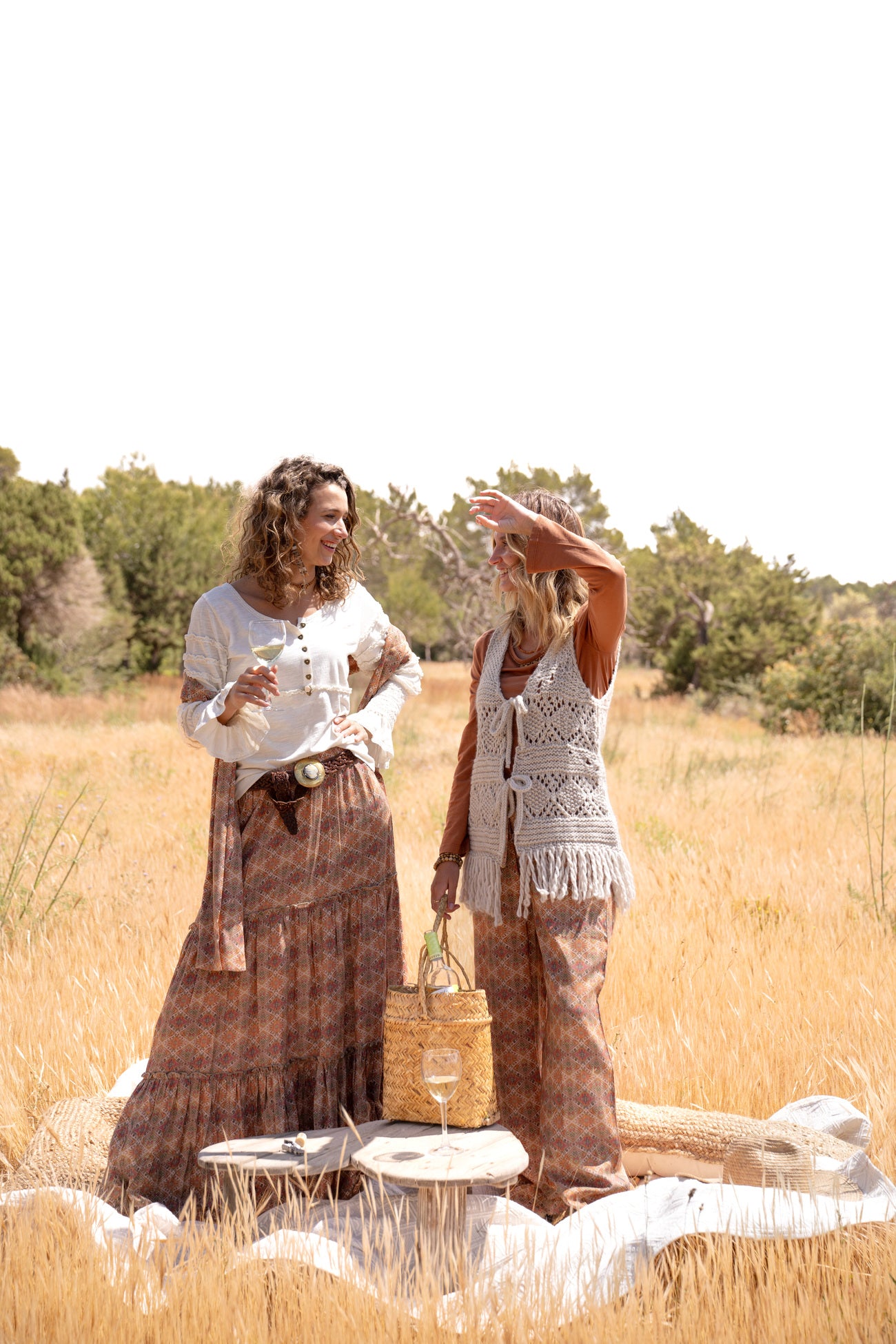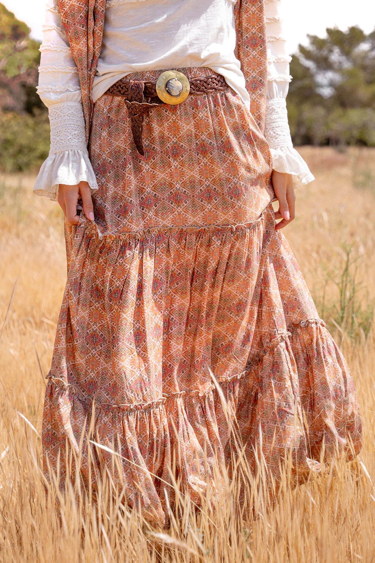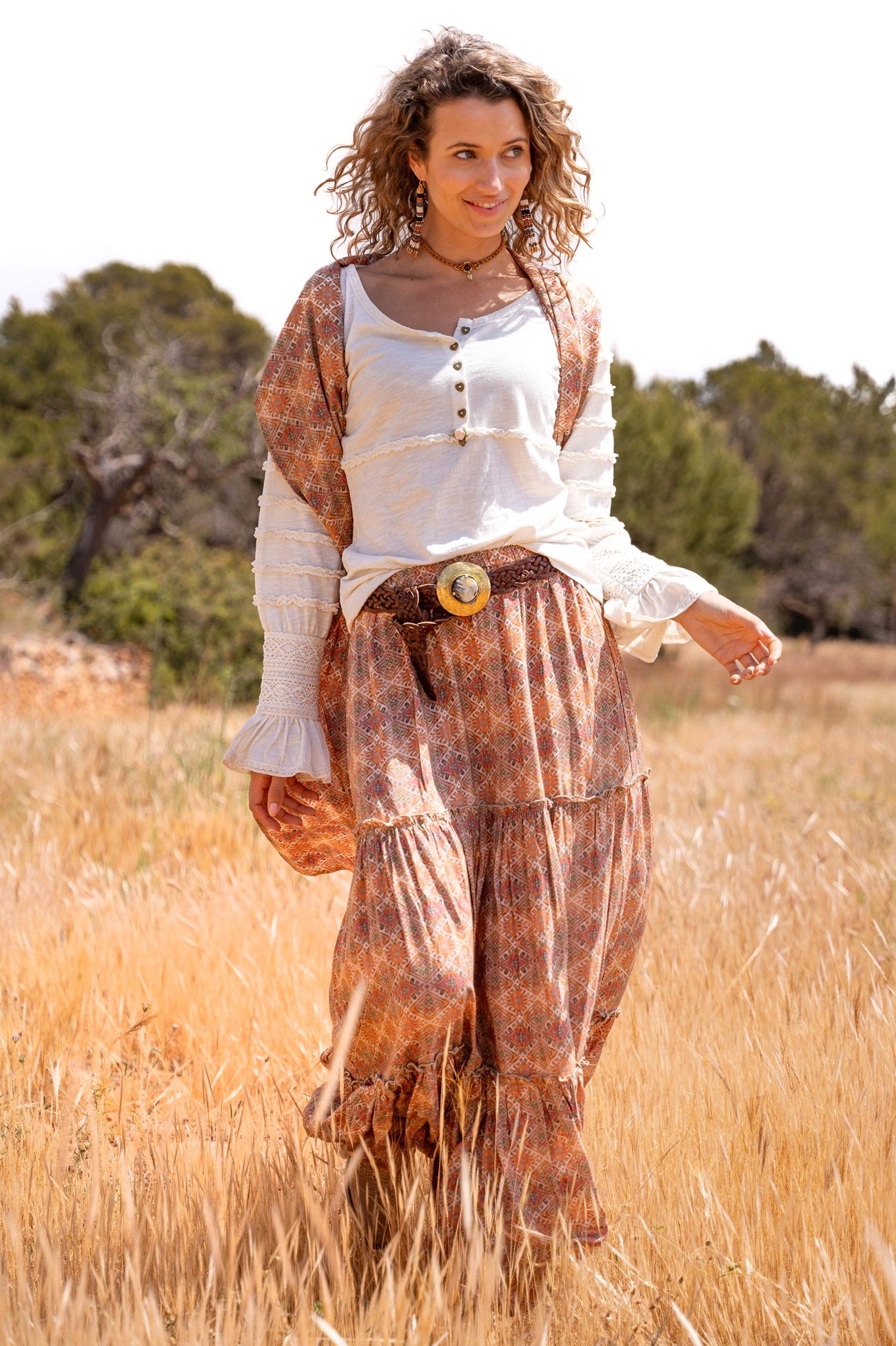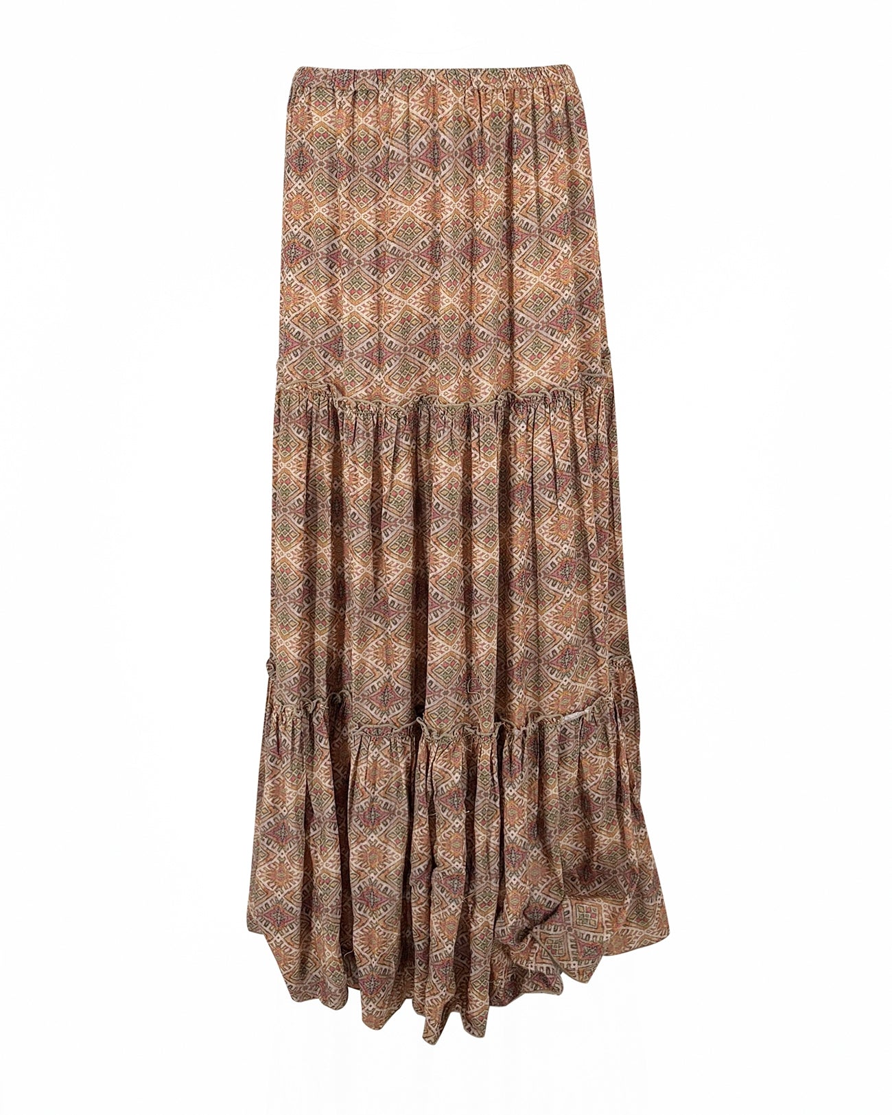 Product gegevens: Gypsy rok met print, soepel vallend model, elastieke band in de heupen